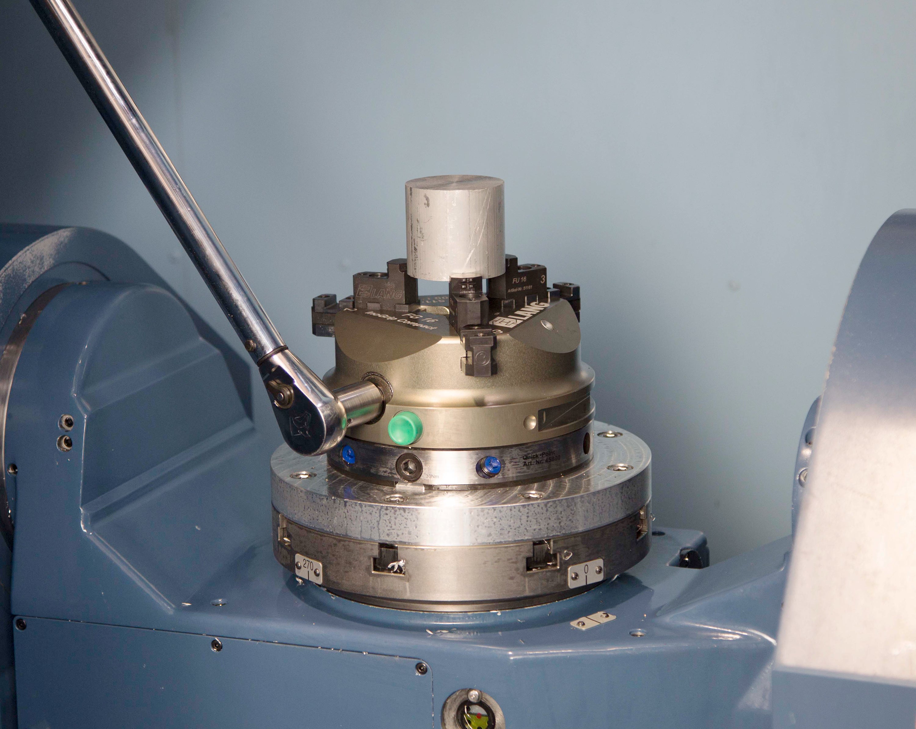 Center the cylindrical stock in the chuck jaws and place in the "high" or "low" position.