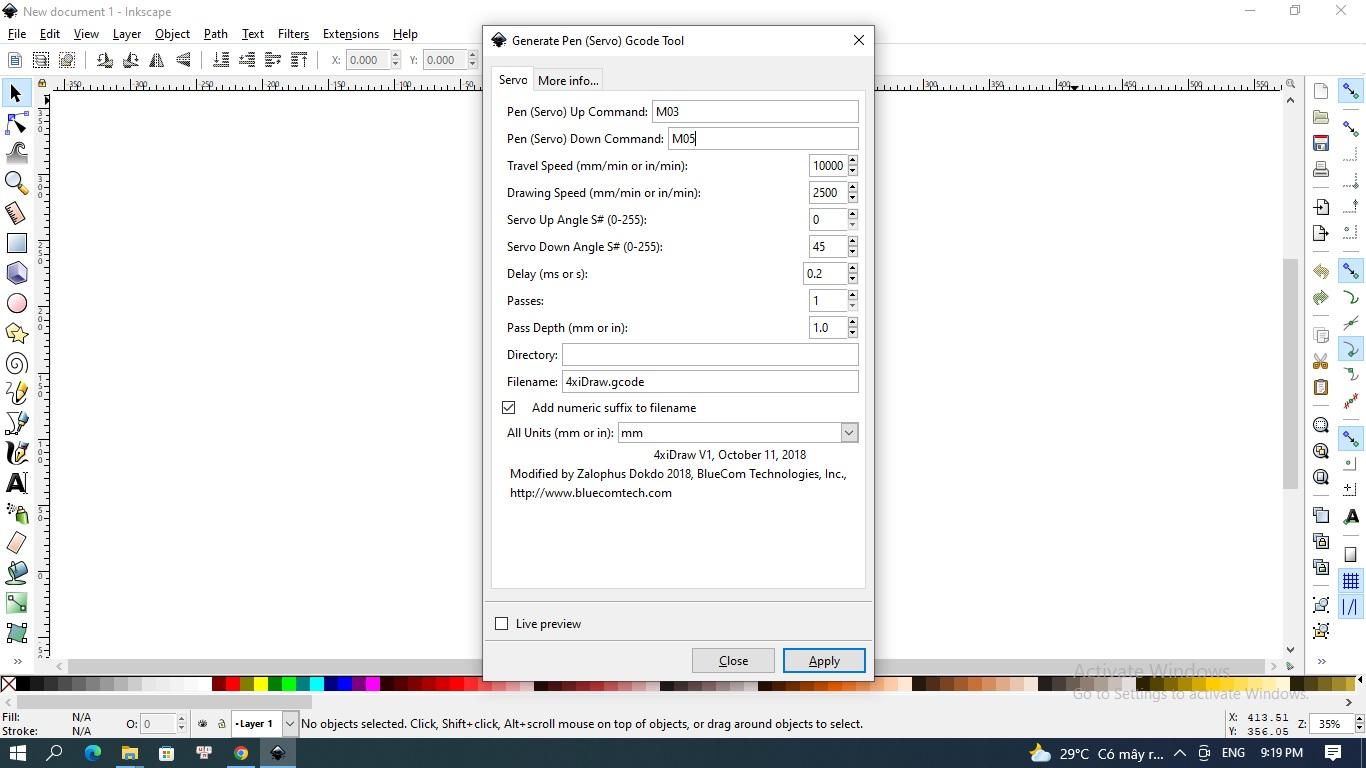 - There is another Inkscape plug-in that works great that I found on youtuber called Shop MAKER Q: 4xiDraw & km laser.