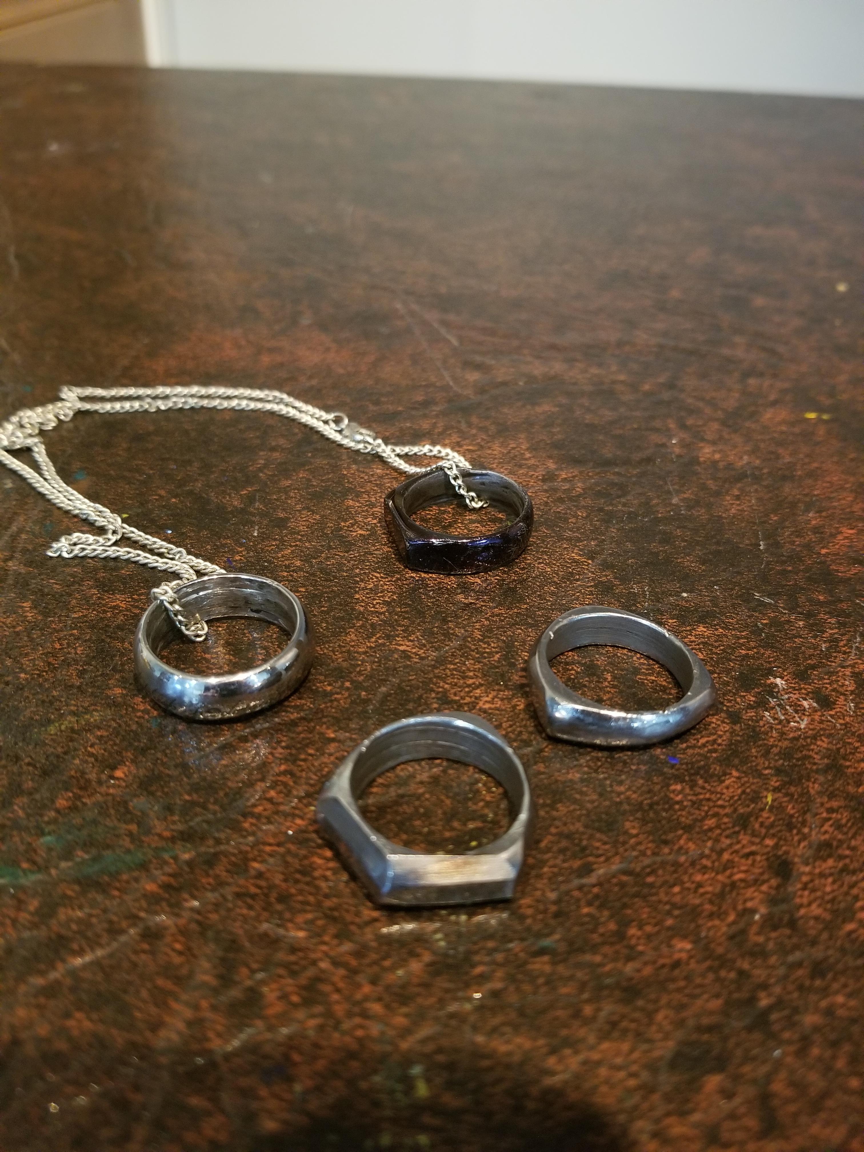 I used a cooking torch to temper one ring and get an even “midnight blue” shade all over.