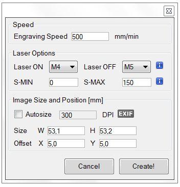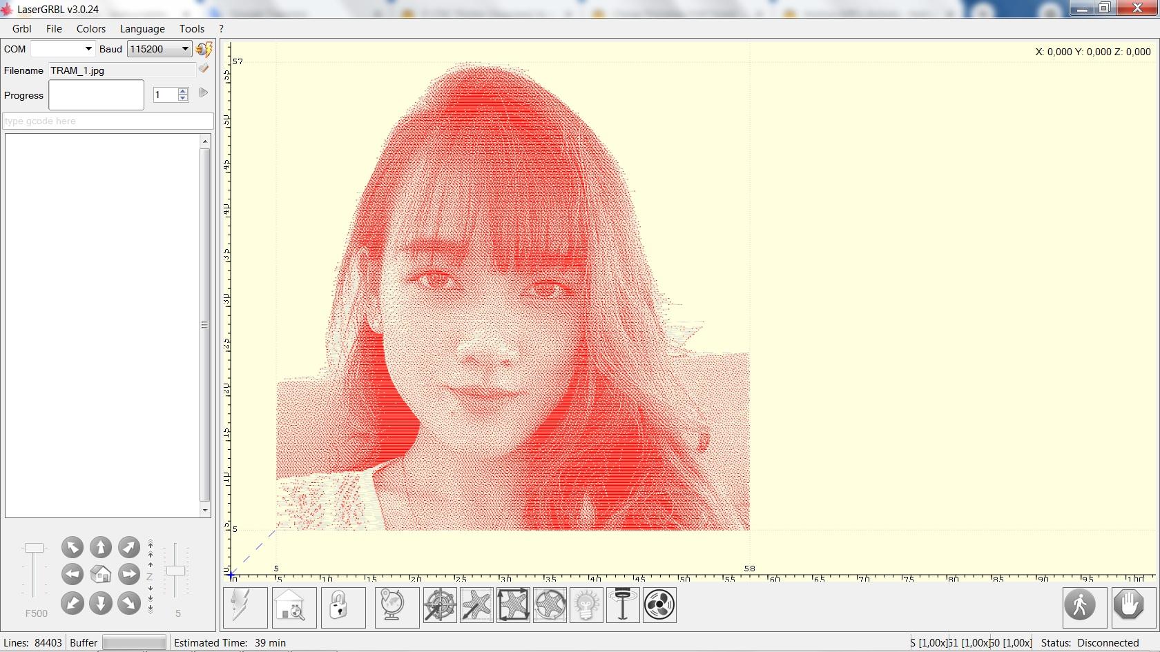 To engrave on plywood, I used LaserGRBL software, detail description at: https://lasergrbl.com/. LaserGRBL can load and stream Gcode of images to GRBL based engraver by its internal conversion tool.
