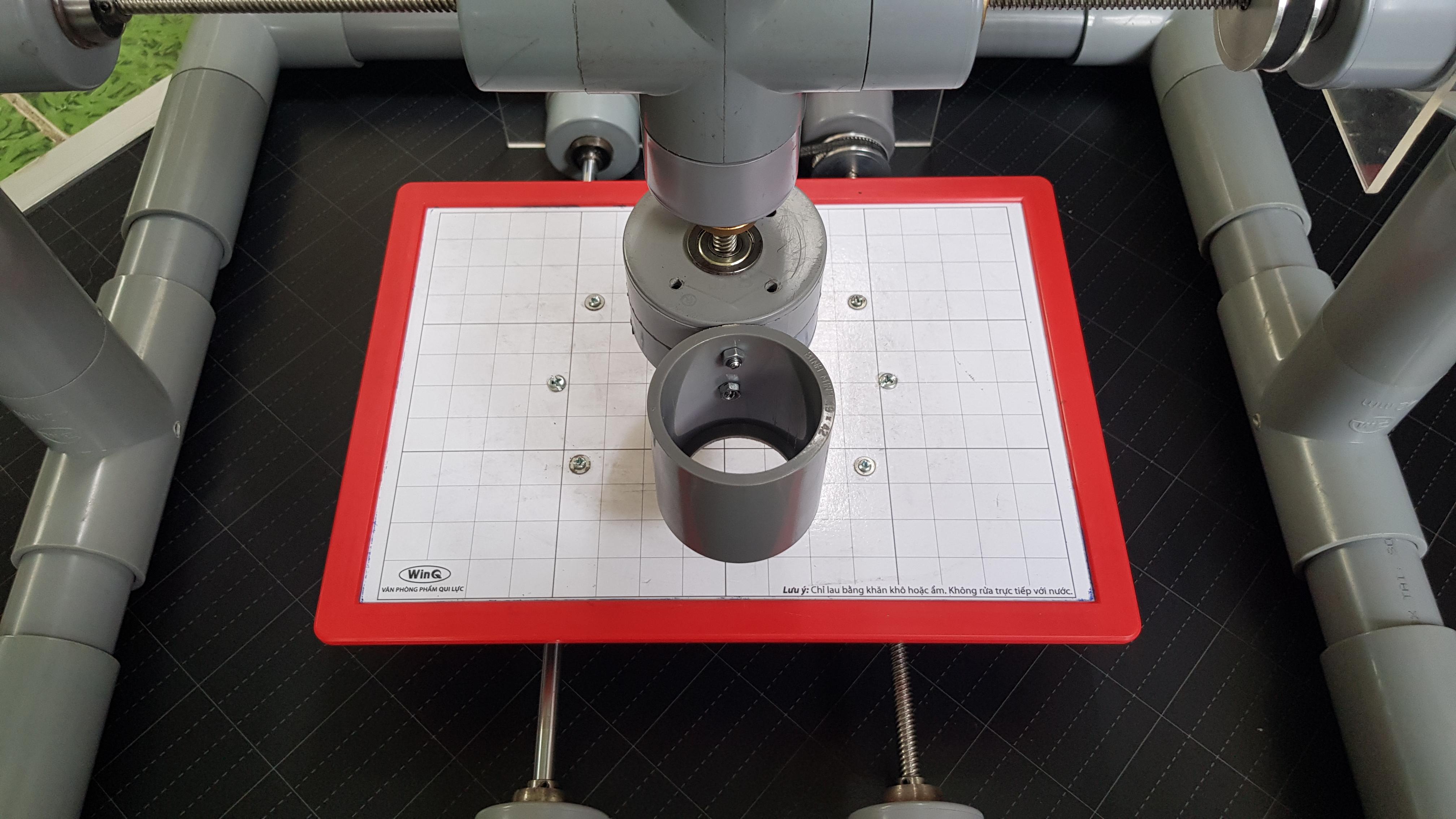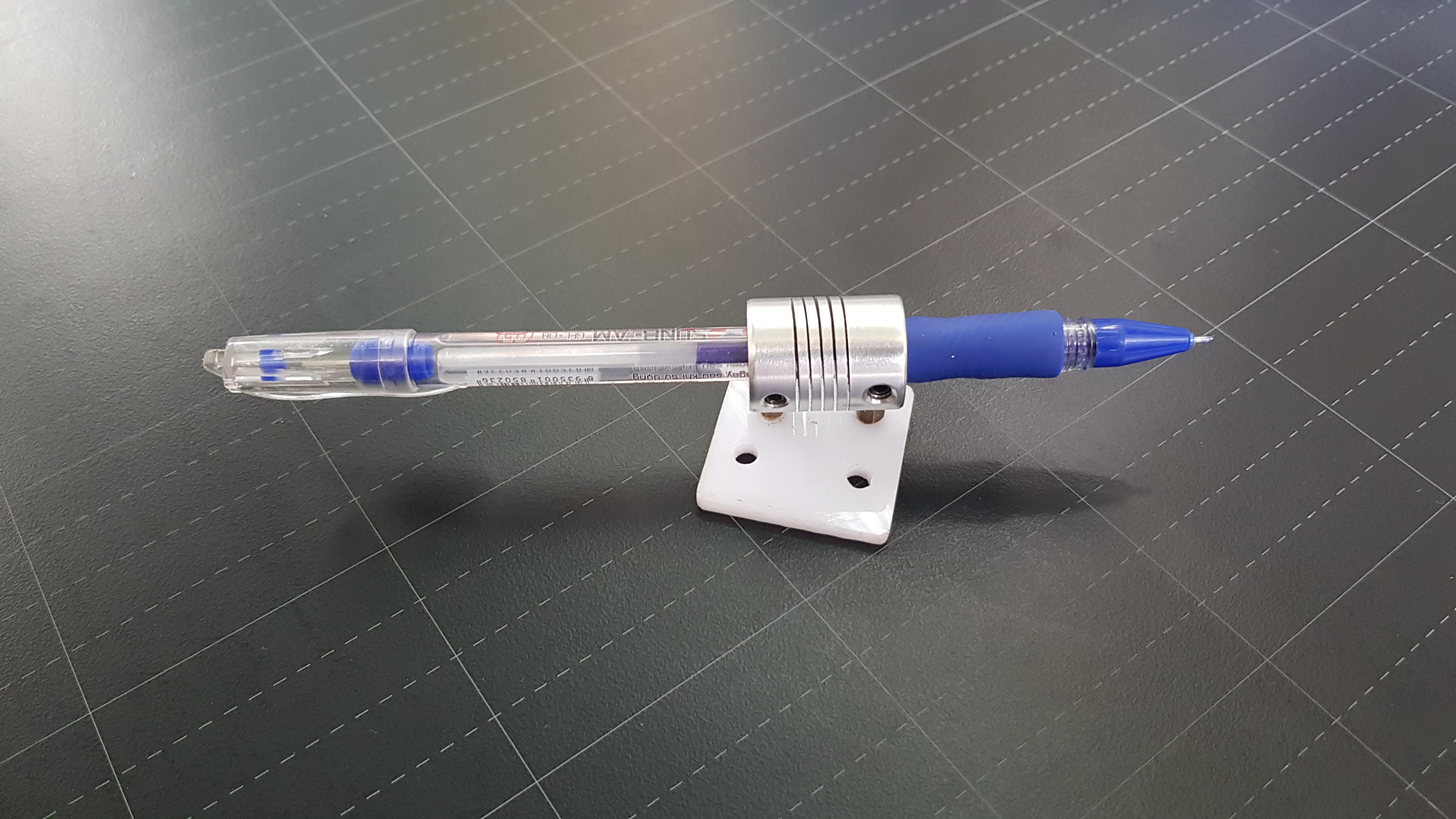- Cutting a small acrylic sheet and drilled 4 holes on it. Two holes were used to mount flexible coupling 10x10 mm for pen clamping and the other two holes were used to connect to the Z working base.