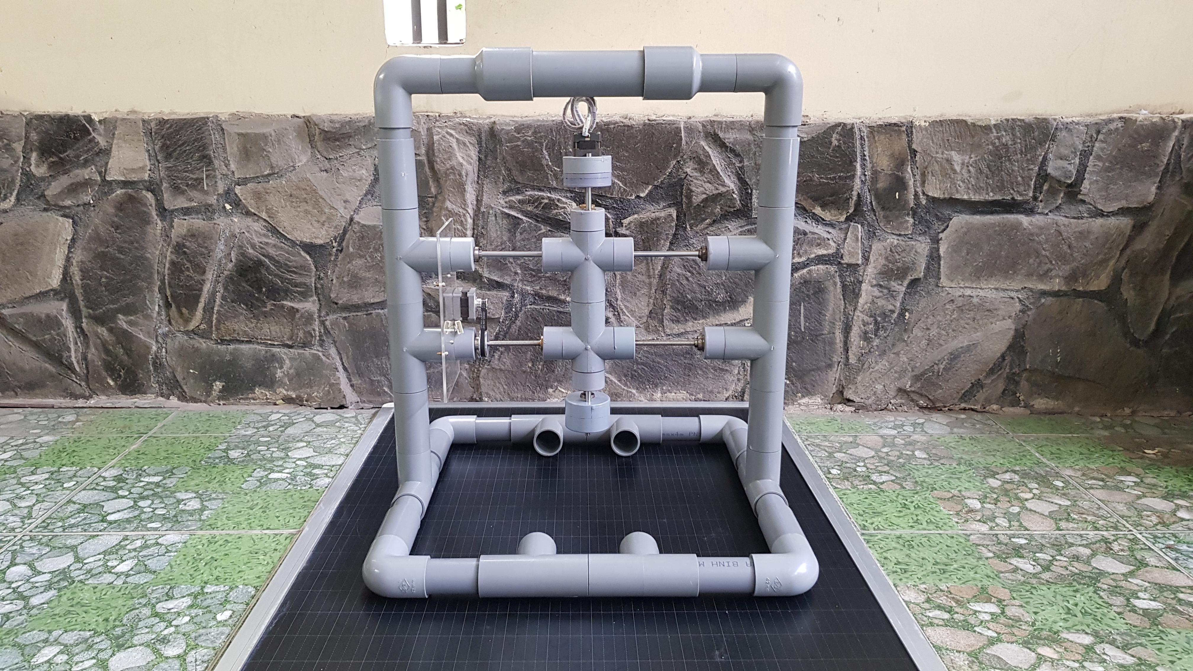 With PVC fittings, I could built a frame easily which had 4 pairs of pipes that were completely symmetrical each other. My arrangement idea was as follows: