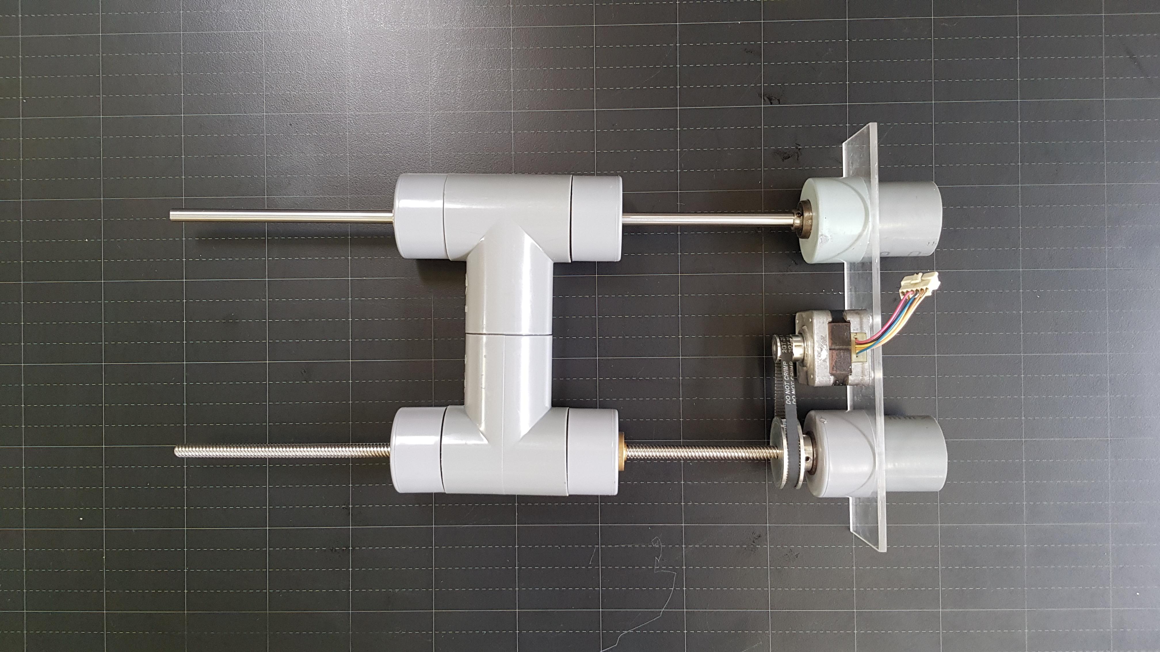 - Threading connecting pipes through these holes and locked them by end caps at stepper motor working side.