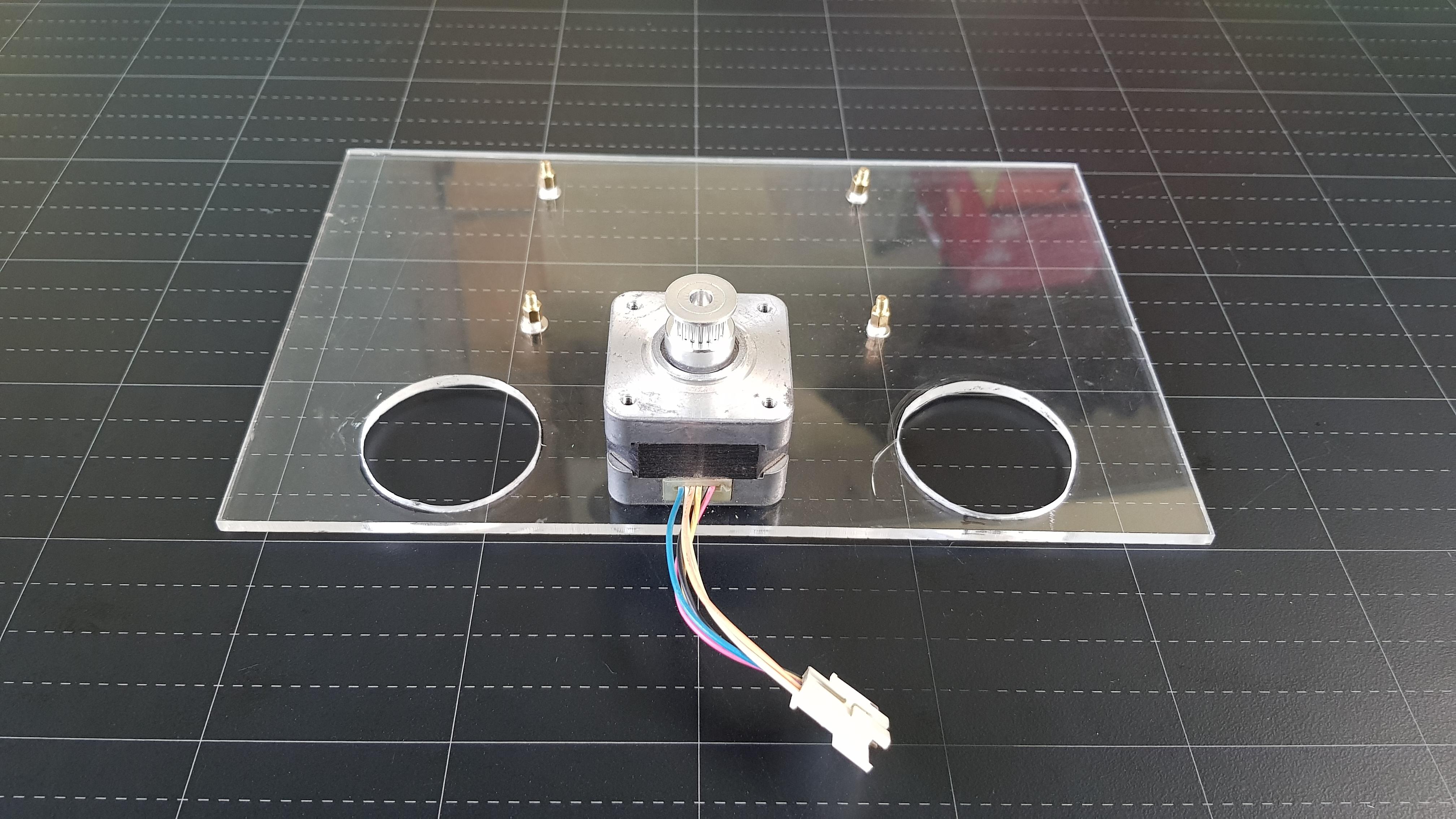 - The Z axis will be mounted on this X axis movement base. It carries one stepper motor and its support on top as described in previous step.