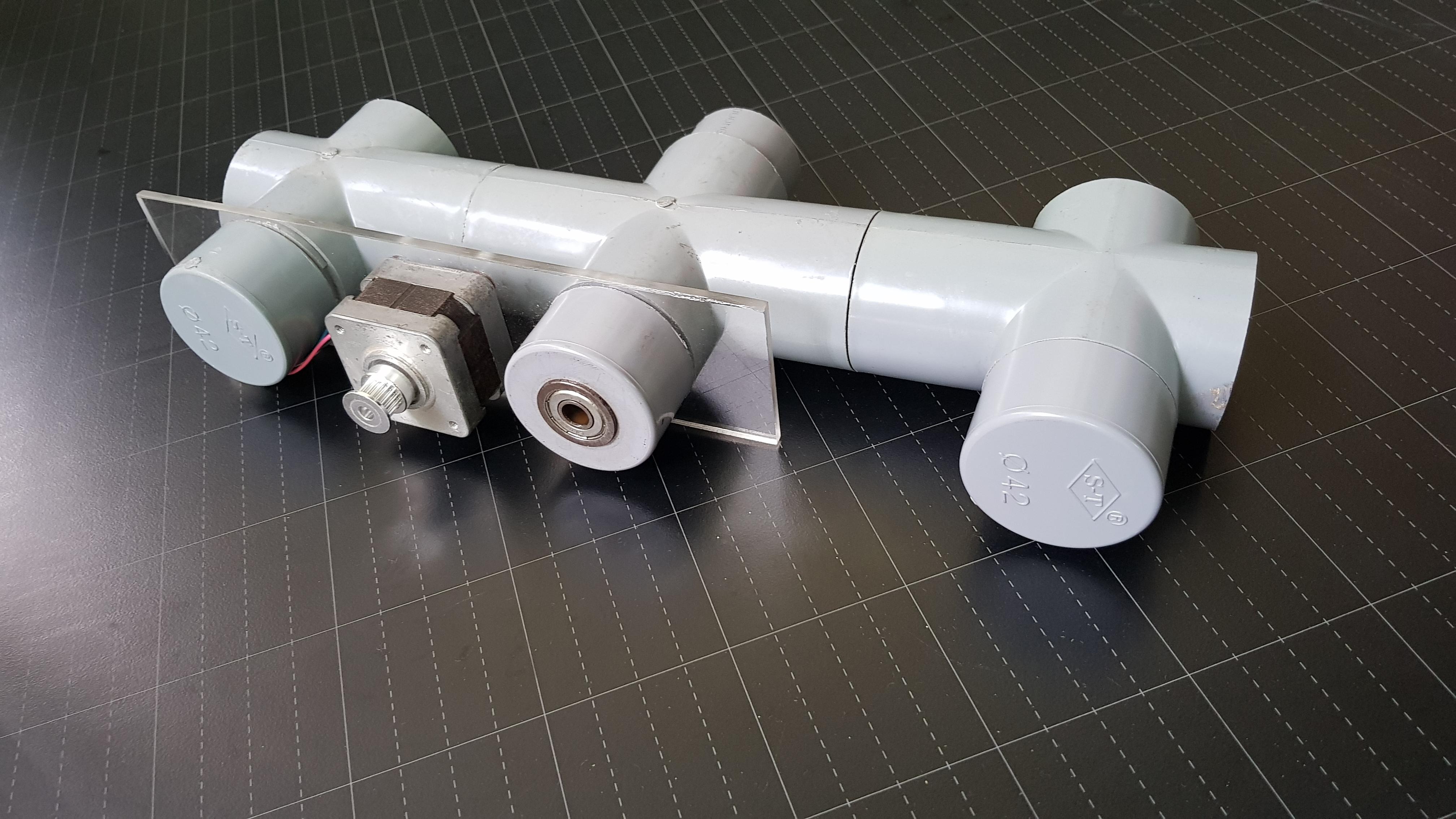 - Mount two PVC pipe tees Ø42mm to left and right crosses of rotary base.