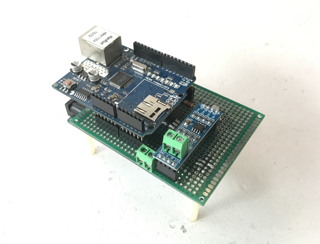 - Installation Ethernet Shield and RS-485 Module on Adapter Shield. Plugging this Adapter Shield on top of Arduino Mega 2560.