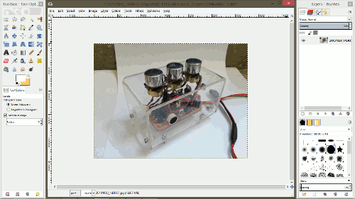 Ben Finio provided a useful tip if you're finding your image to be over exposed. In step-7, in Colors->Levels window, increase the value of leftmost triangle to around 10 to reduce over-exposure. You can also reduce the value of middle triangle(aka gamma) to around 0.95 to get a better looking image. These values were used by him and I tested them to be working pretty well. The 3 images of green breadboard with wire cutter are also provided by him.