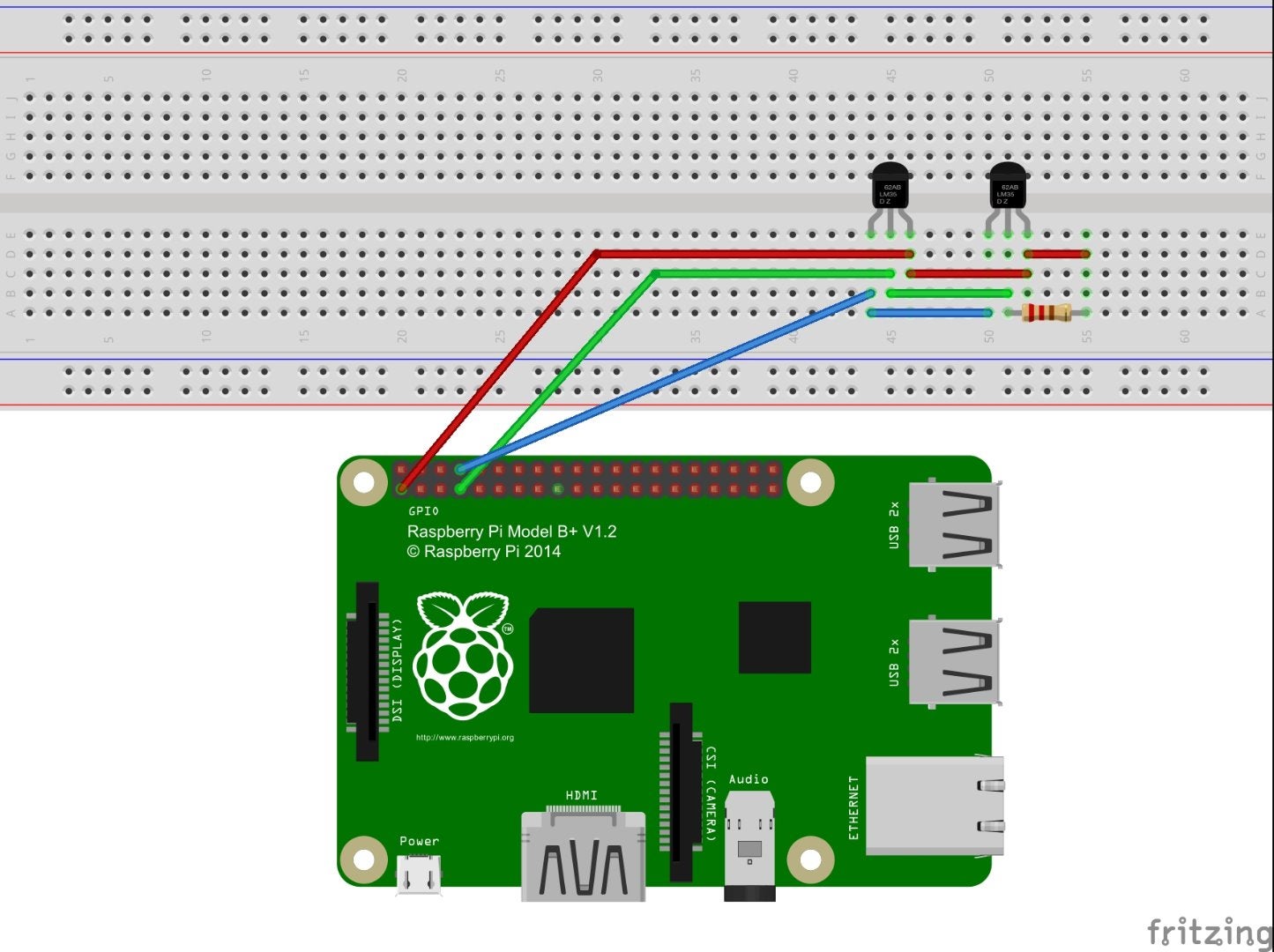 This project uses 2 DS18B20 1-wire temperature sensors. The sensors can be connected in parallel with only one 4.7K resistor.