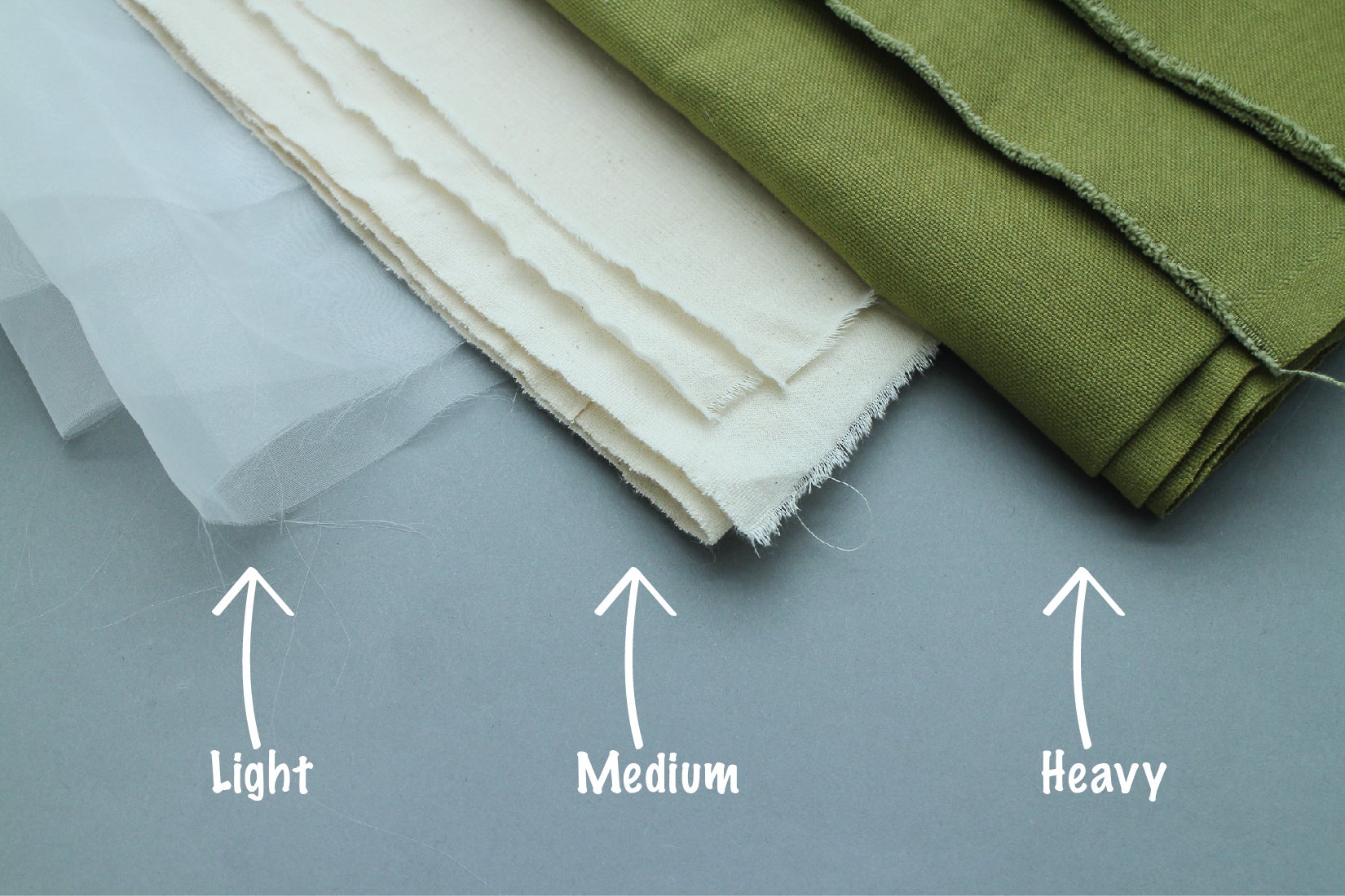 By Weight: mid-weight fabrics will usually be the easiest to sew. Fabric that is too thick, like heavy denim or canvas, may be difficult for a home machine to sew through and sometimes requires special needles. Very thin fabrics like chiffon or charmeuse are slippery and really difficult to sew neatly. As a beginning sewer, I would definitely steer clear of these thin drapey fabrics if you don't want spend a lot of time cursing at your sewing machine.