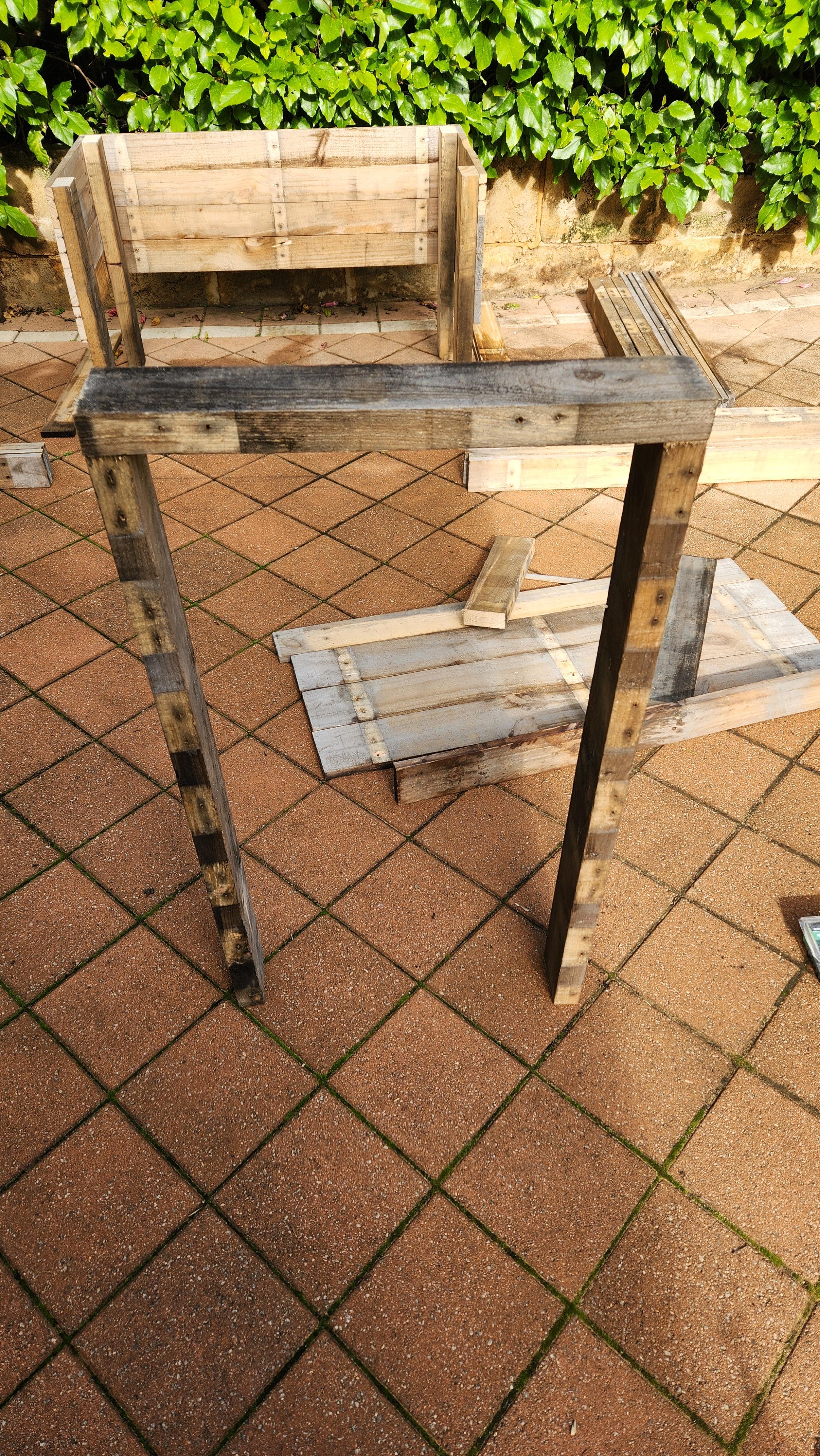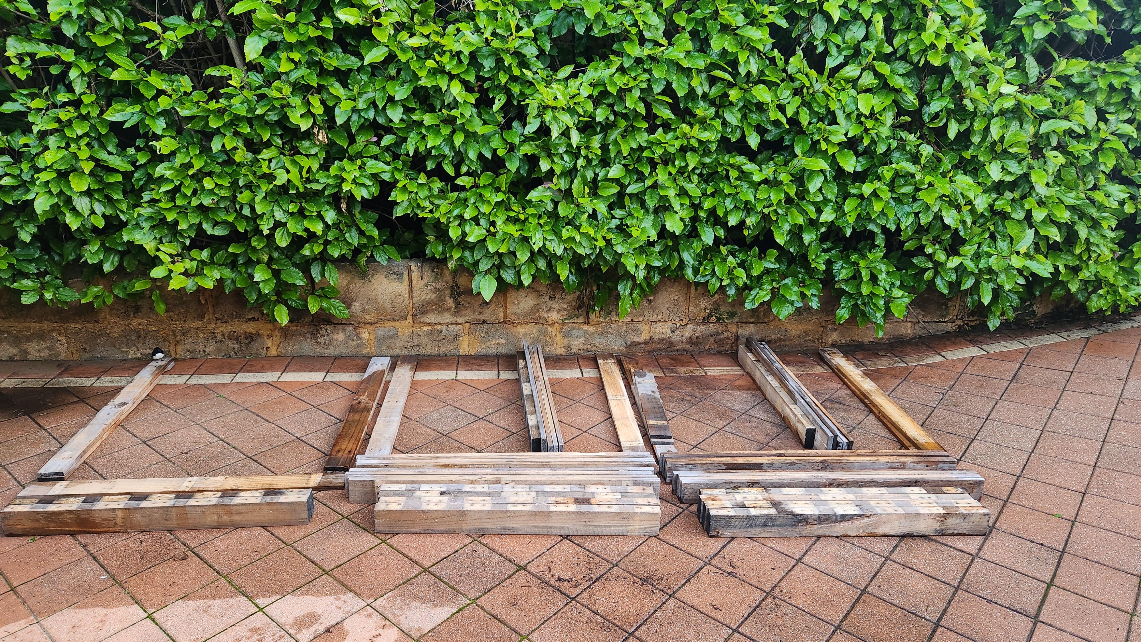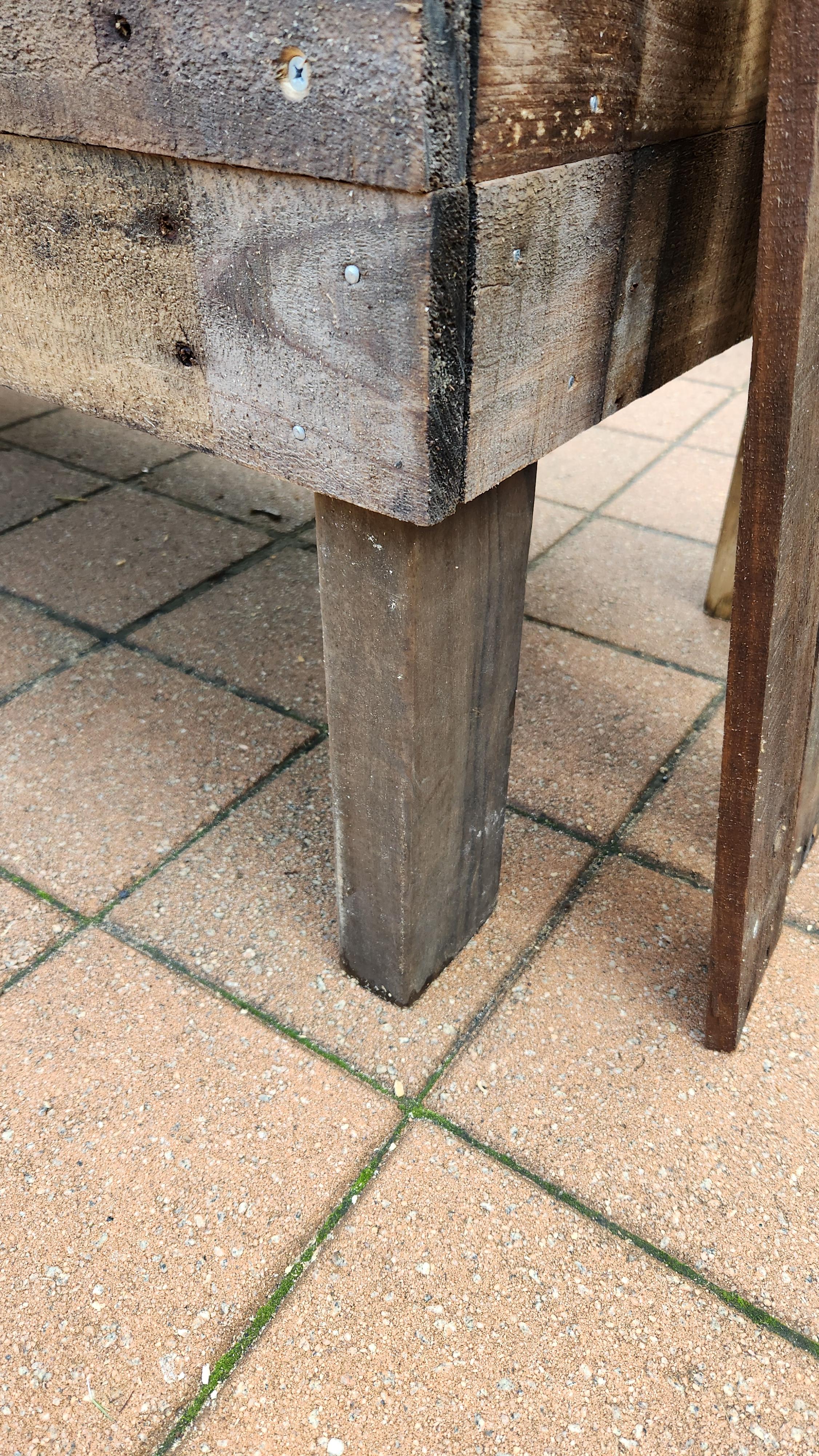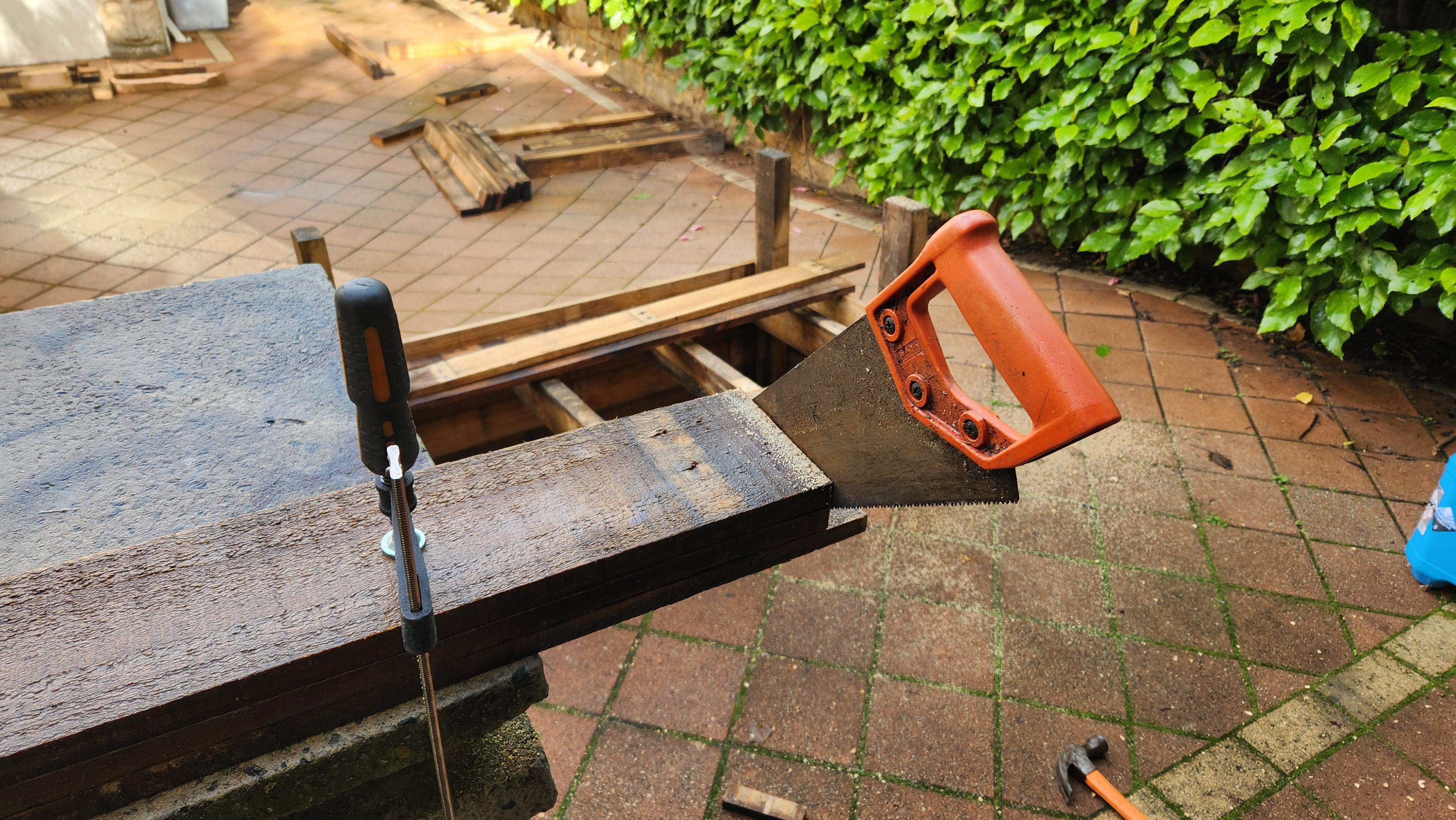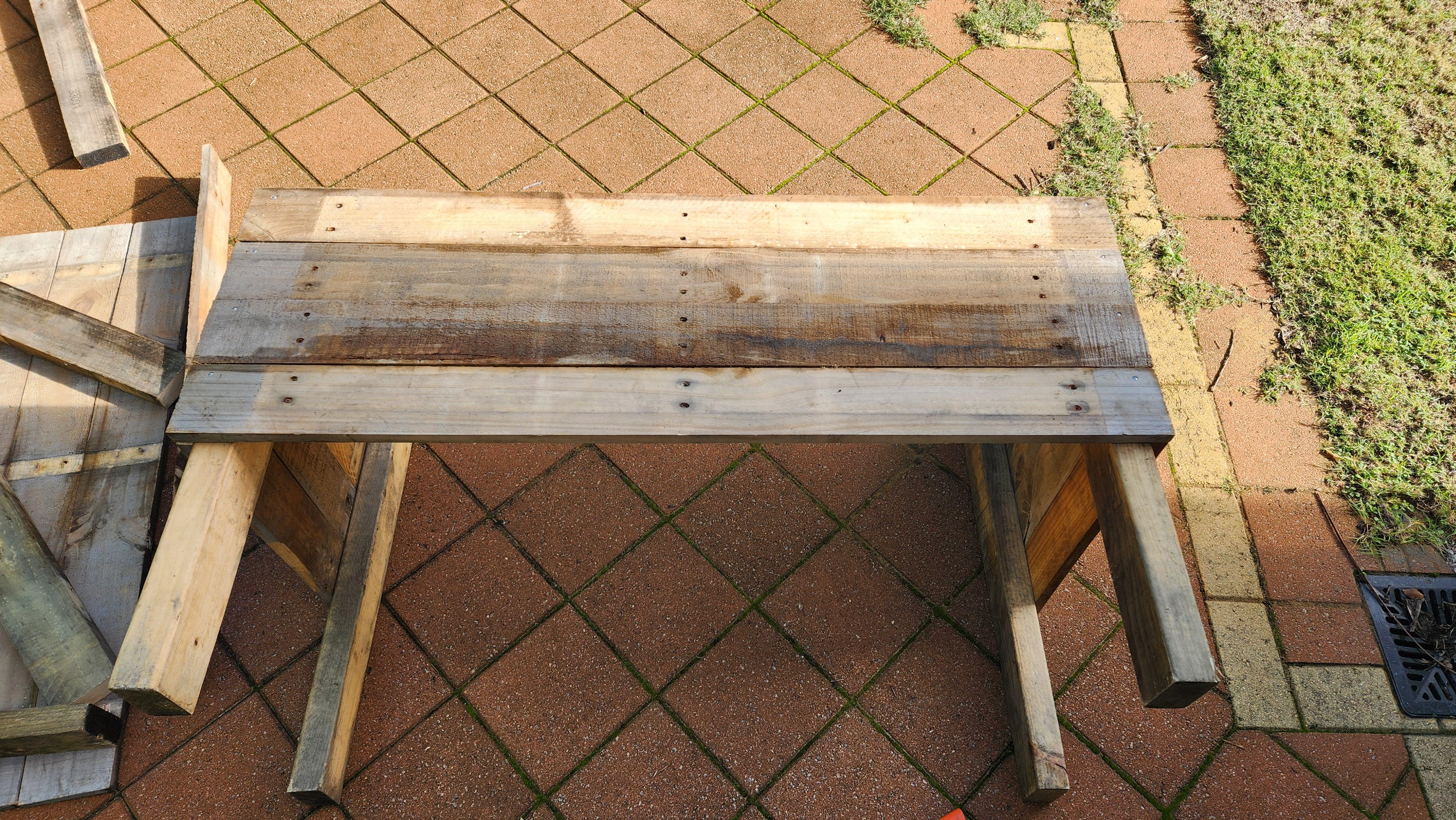 H2-treated pine is also ok, but not preferable. Legs can be any length you want, I wanted legs that were 300mm off the ground, so I cut my legs to 680mm long. This accounts for the width of 4 planks widthwise (4*95mm in my case) + the length of leg I wanted.