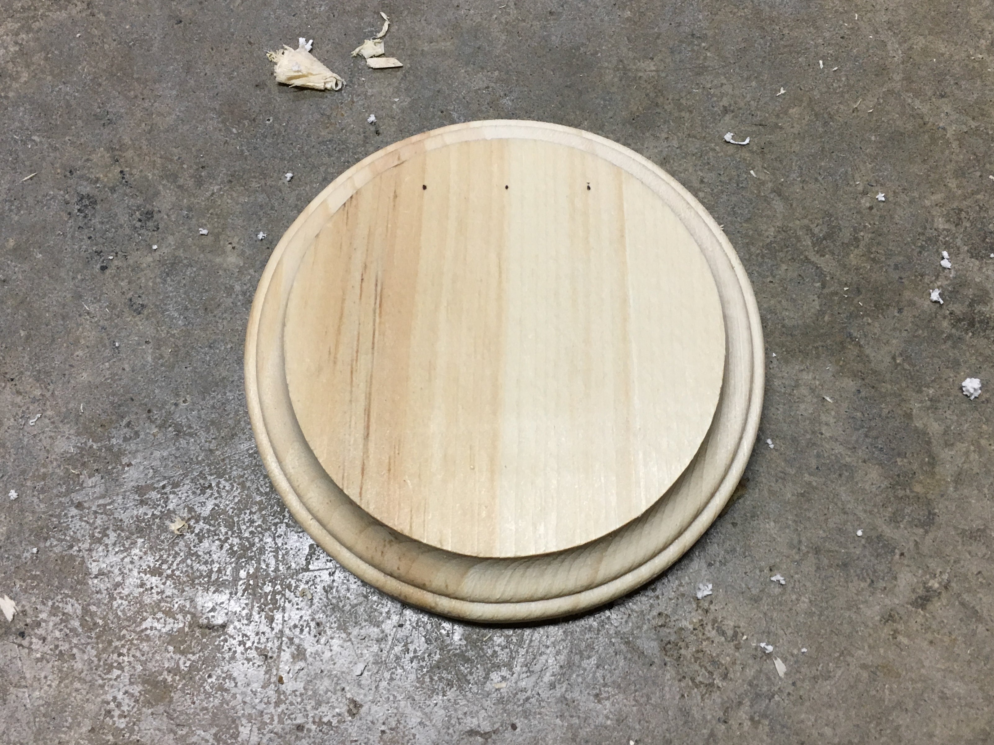 I purchased these wooden rounds at Michael's for $.99 each. They are beveled and about 3/4 inch thick. I wish they weren't that thick but they worked for this application. If you can find thinner ones use those! This was overkill.