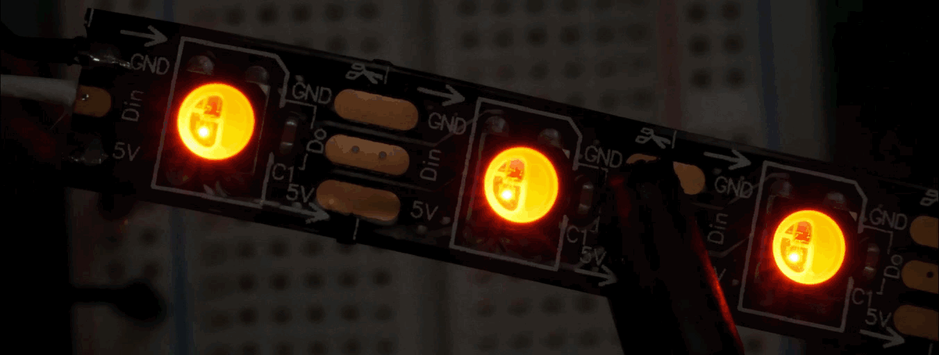 #include <Adafruit_NeoPixel.h> #define PIN 6 #define NUM_LEDS 19 #define BRIGHTNESS 50 // Parameter 1 = number of pixels in strip // Parameter 2 = pin number (most are valid) // Parameter 3 = pixel type flags, add together as needed: // NEO_RGB Pixels are wired for RGB bitstream // NEO_GRB Pixels are wired for GRB bitstream, correct if colors are swapped upon testing // NEO_RGBW Pixels are wired for RGBW bitstream // NEO_KHZ400 400 KHz bitstream (e.g. FLORA pixels) // NEO_KHZ800 800 KHz bitstream (e.g. High Density LED strip), correct for neopixel stick Adafruit_NeoPixel strip = Adafruit_NeoPixel(NUM_LEDS, PIN, NEO_GRBW + NEO_KHZ800);