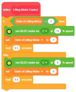 The main block is used to connect the Smartphone via Dabble and call out the required blocks when the condition in the if arm is true.