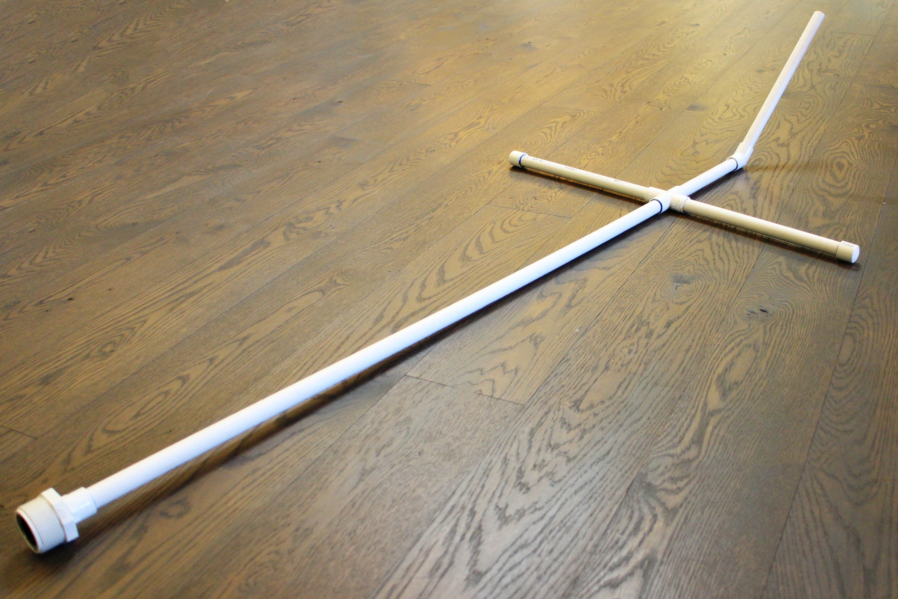 With both stabilizers end caps installed we can attach the stabilizers to the the PVC 4-way splitter.