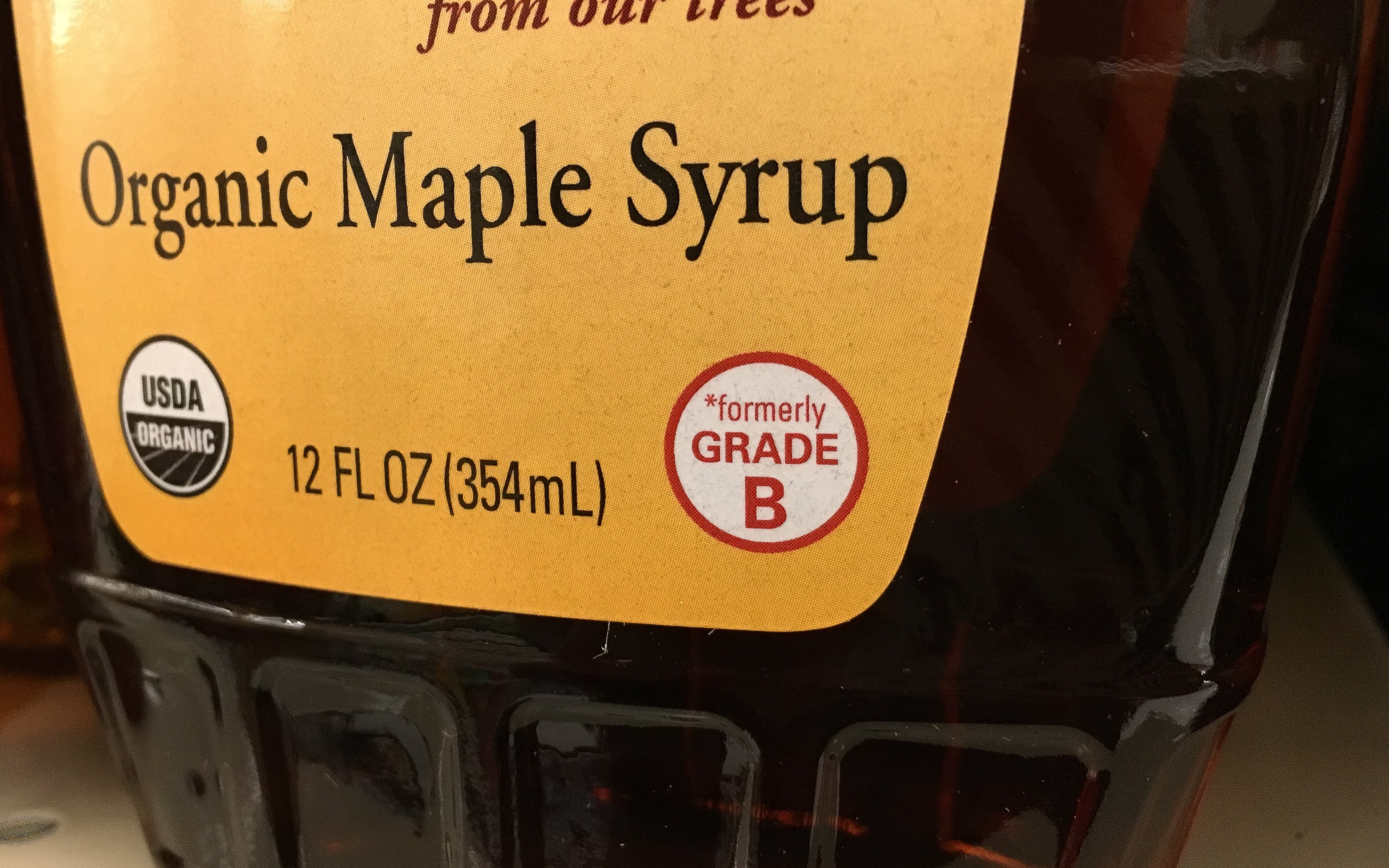 Maple syrup is divided into grades, which have recently changed names. You will see new labels on most of the bottles like the one below.