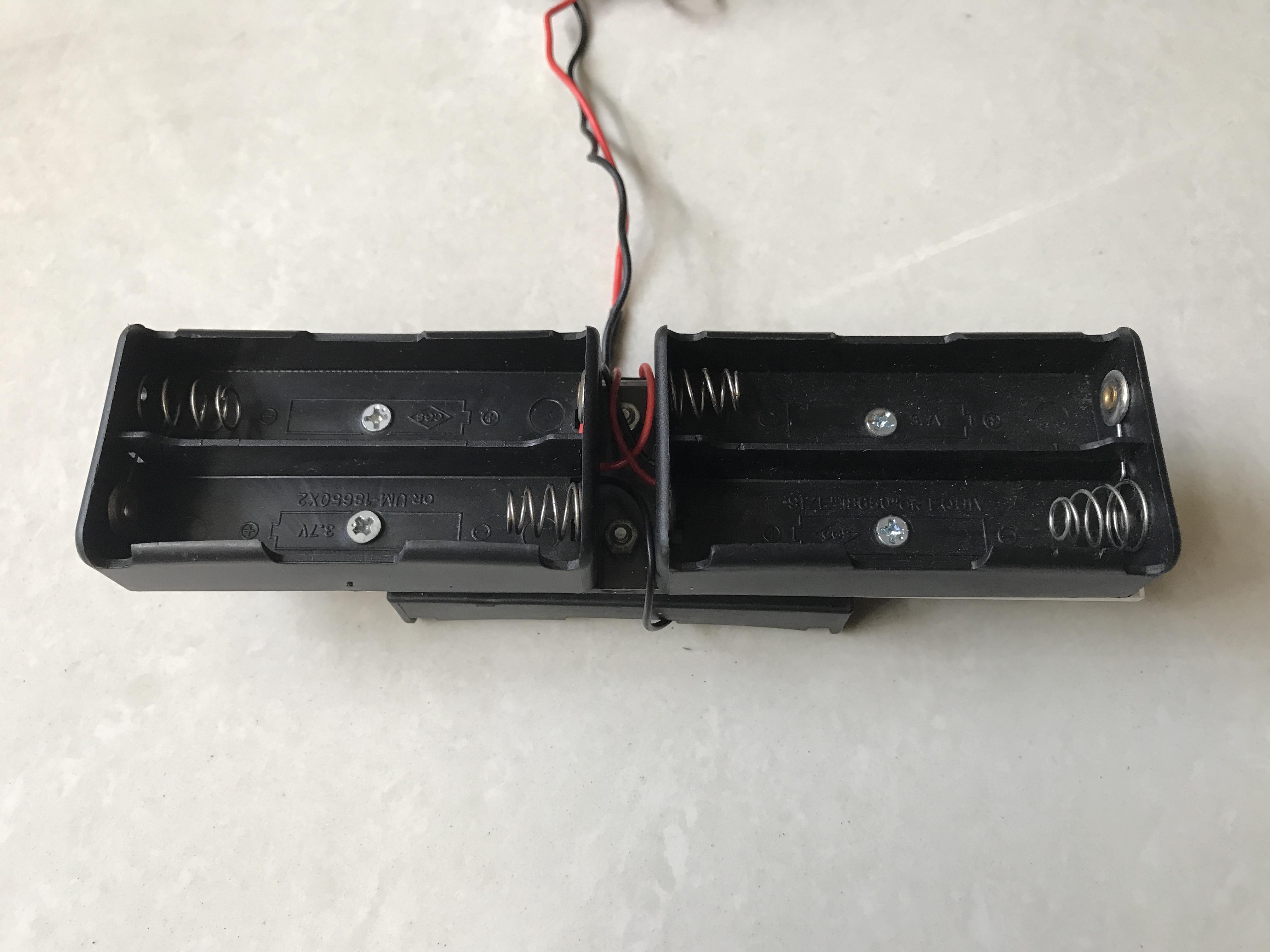 I cut a small acrylic sheet, dimension 180 x 40mm, drilled holes amd mount 2pcs x one slot & two slot battery 18650 holder on it.