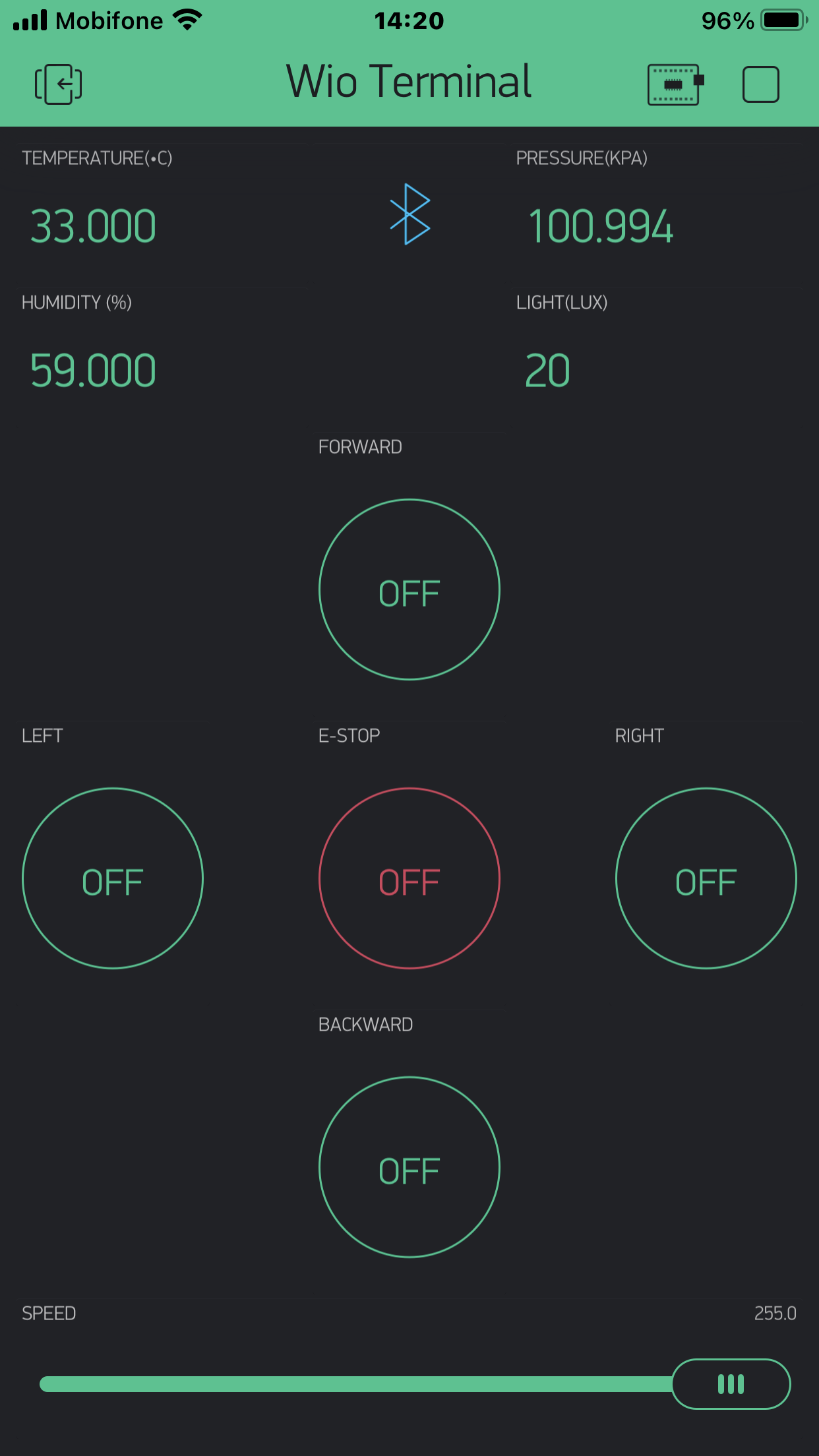I used virtual pin in Blynk for E-Stop button. But it is better to program one of built-in physical buttons on the Wio Terminal as a E-Stop button, in case something goes wrong.