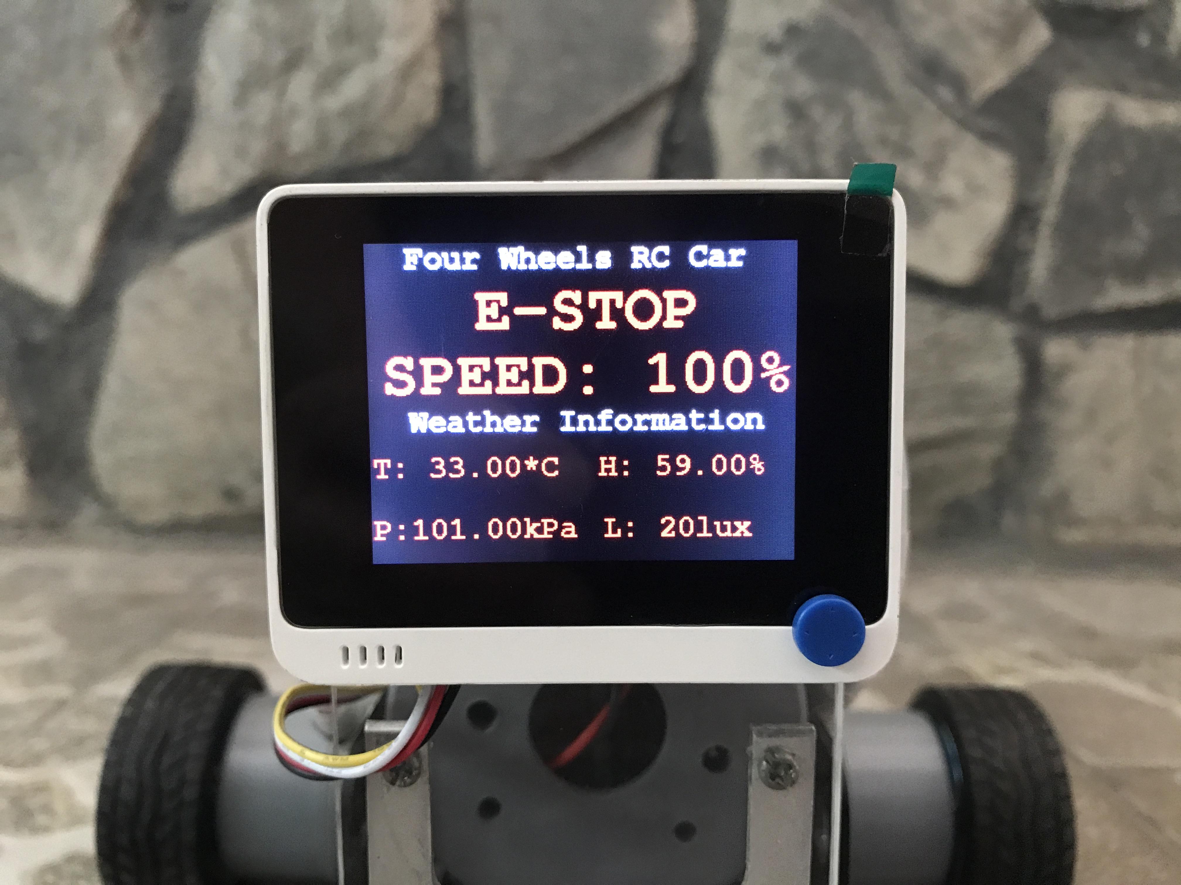 This is my four-wheels bluetooth controlled car which is equipped a local weather station on it. This four wheels car can be fully functional bluetooth controlled via Blynk that allows the car to move forward, backward, turn left, turn right by four DC motors. And it can also measure the weather data on my surrounding such as: air pressure, temperature, humidity, light. It is controlled by Seeed Wio Terminal & DFRobot Quad DC Motor Driver Shield. And all data related to car and weather are shown on both Wio Terminal LCD and Blynk HMI screen.