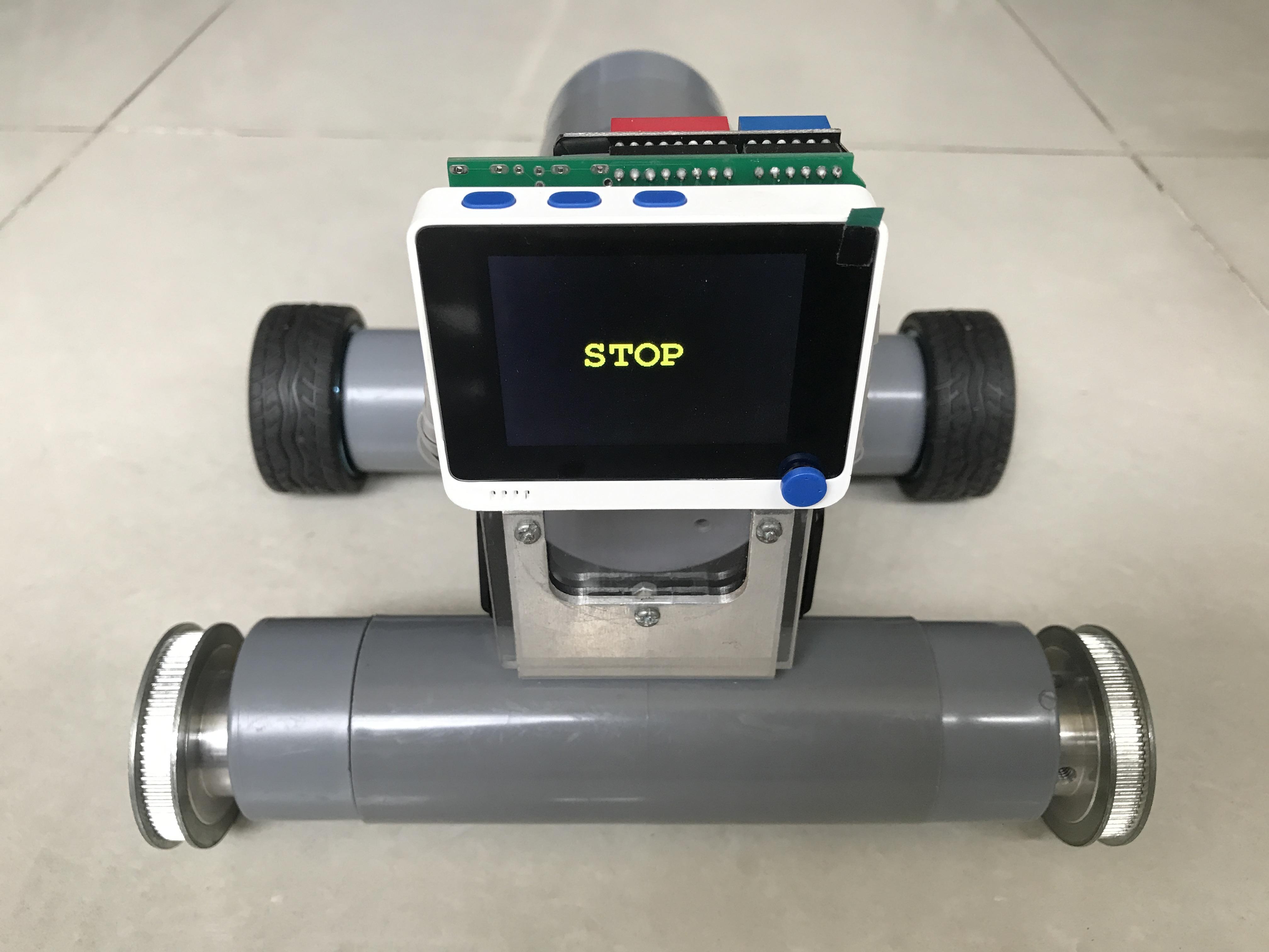 Connect Protoshield with Wio Terminal and motor shield. It looks like this.