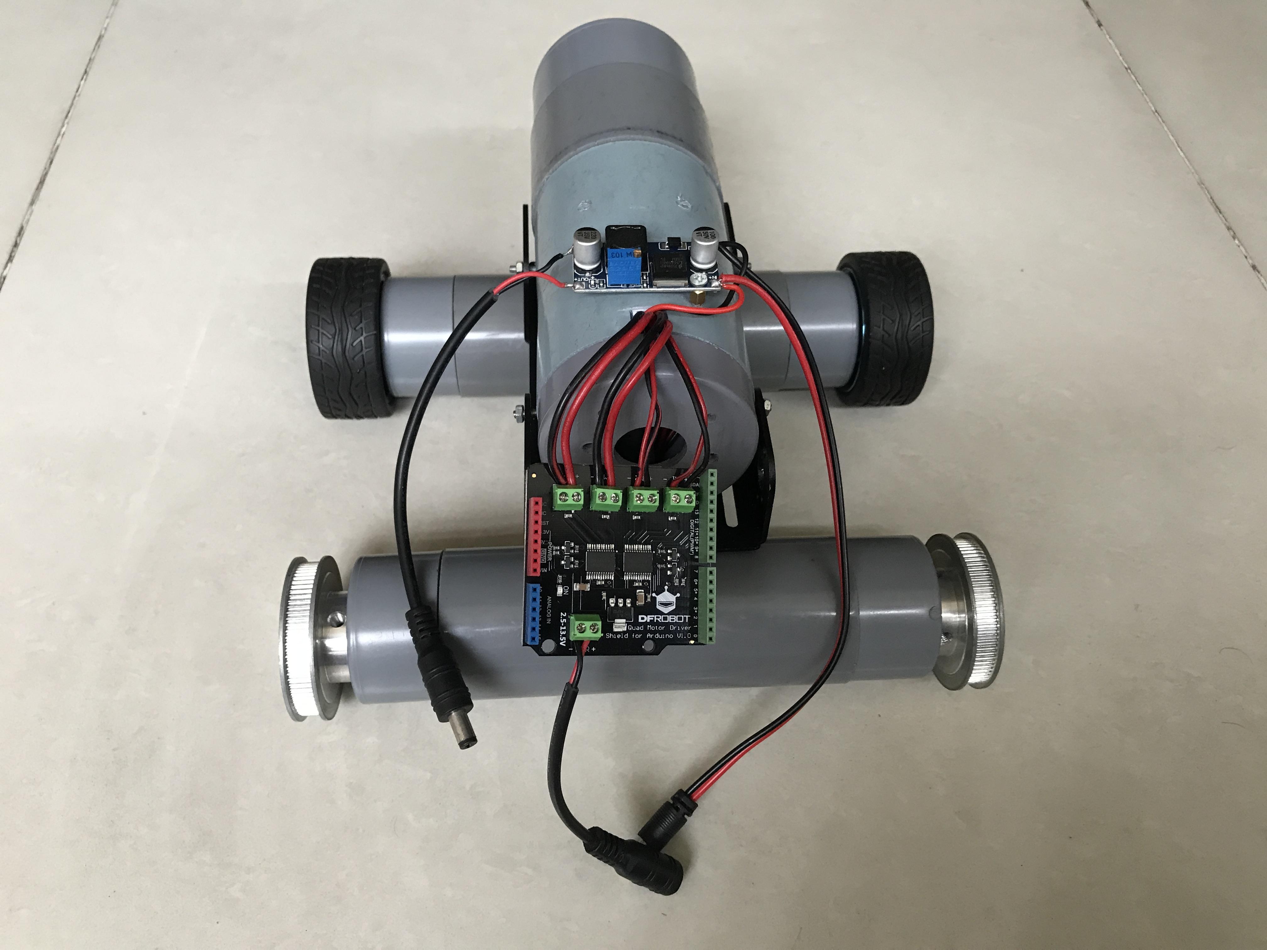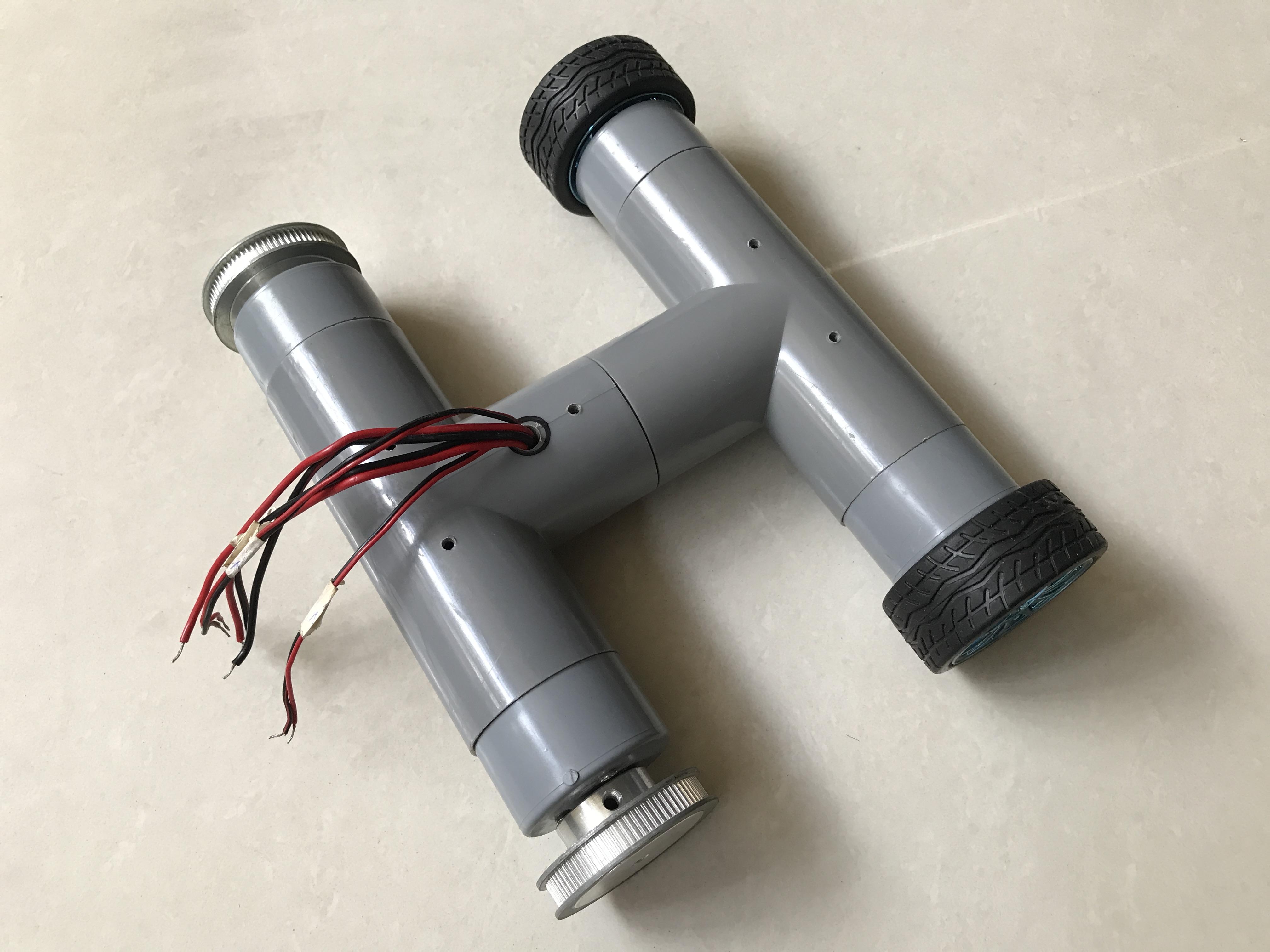 Thread all motor cables inside the PVC chassis and they come out through an opening drilled.