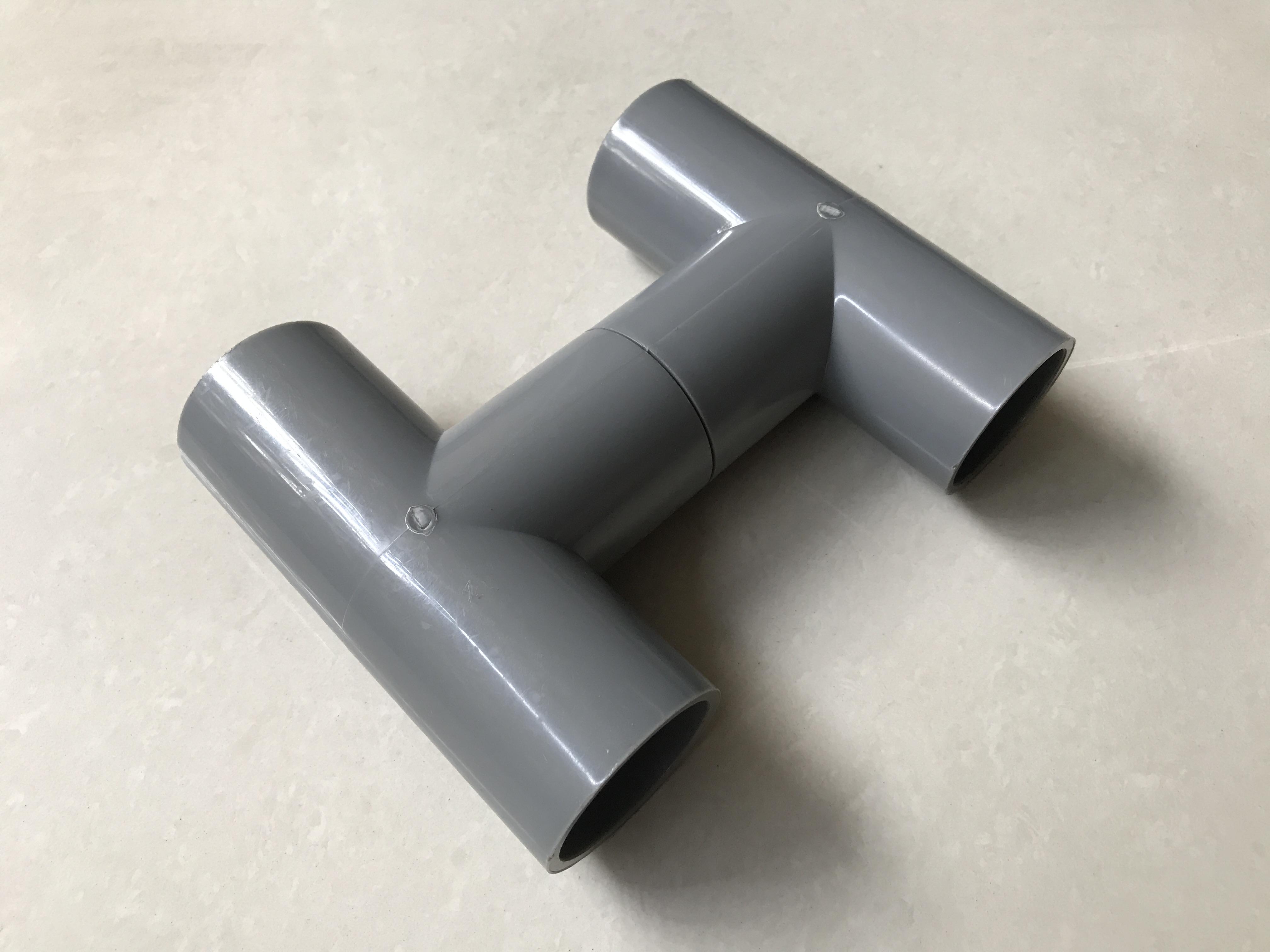 Firstly, I joined 2 pcs x PVC tees Ø42mm together to build a car chassis.