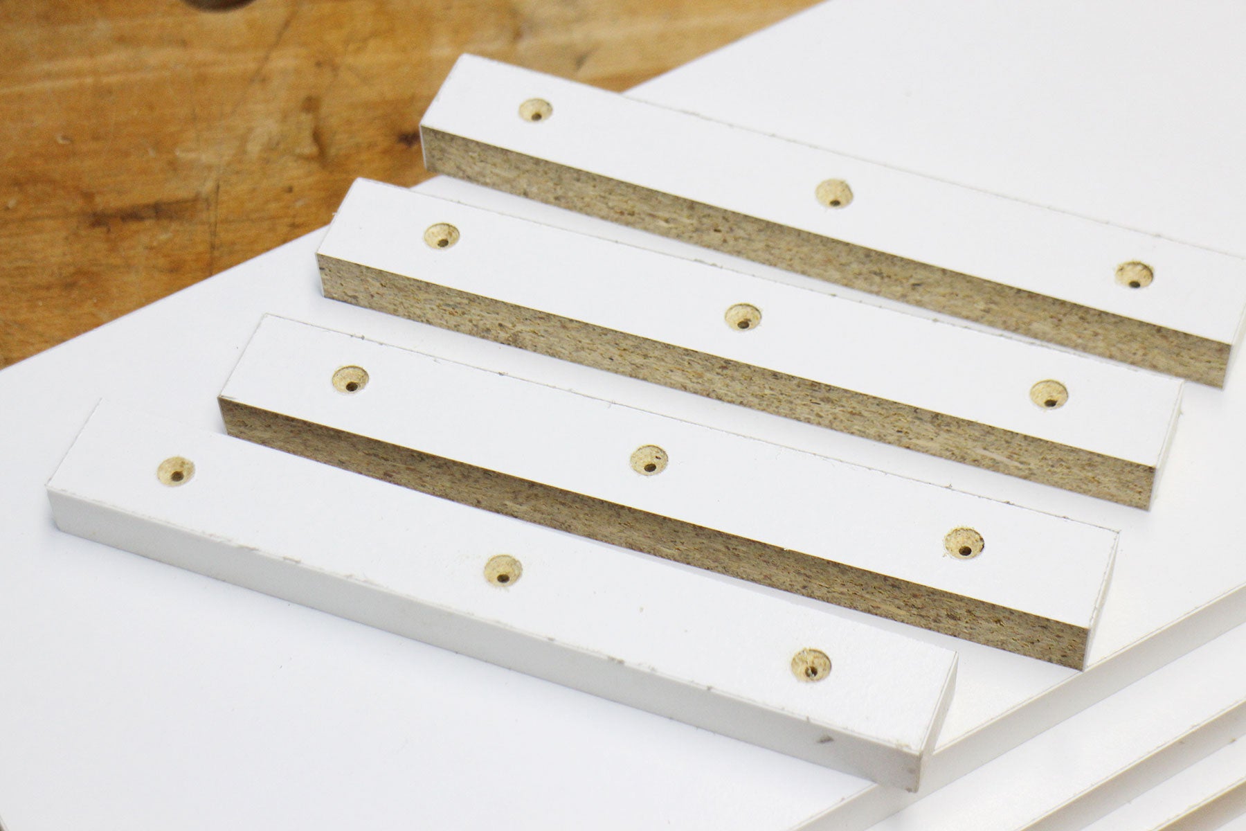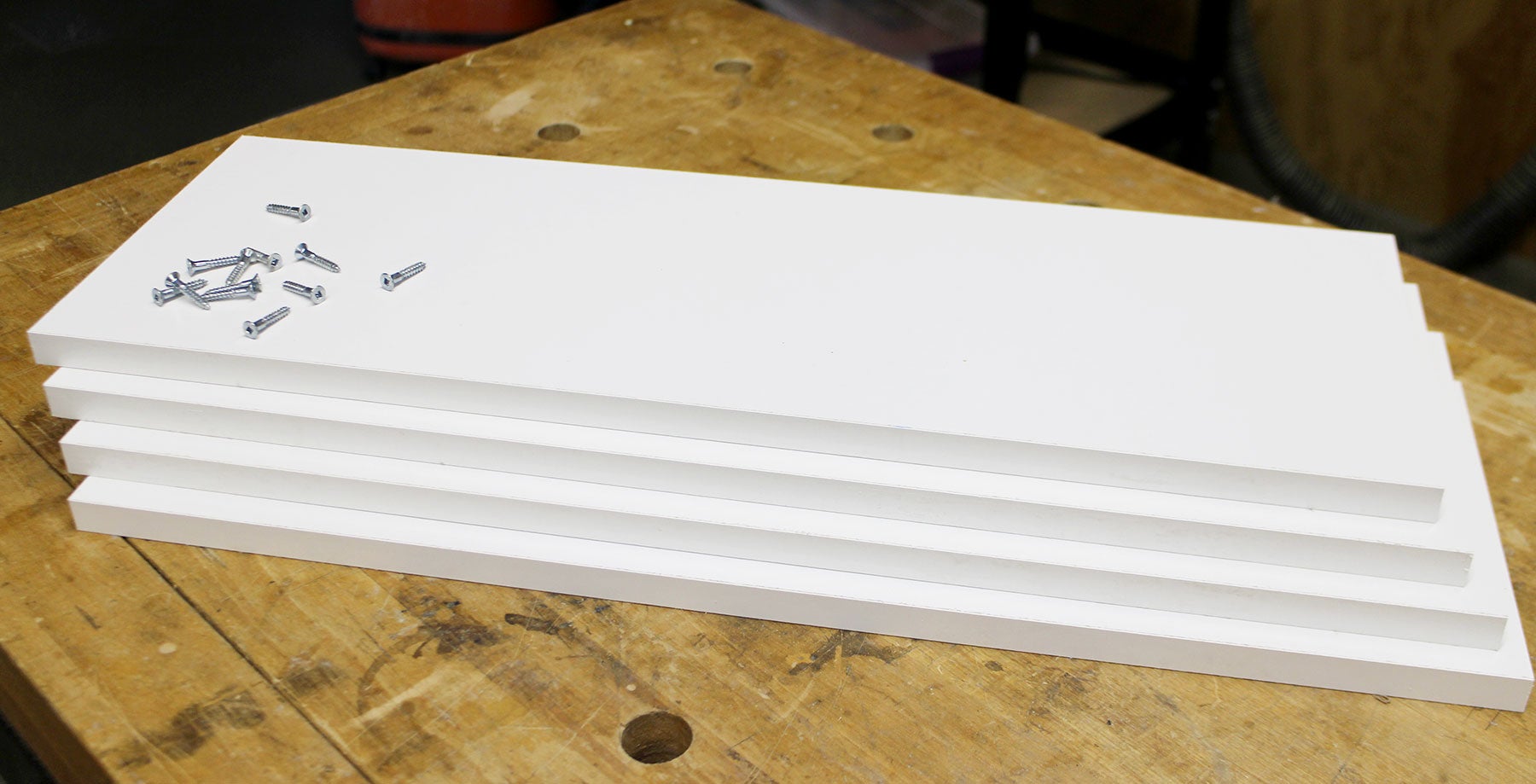 The materials that go into making the wall boards: 4 laminate shelves and 12 screws. So simple!