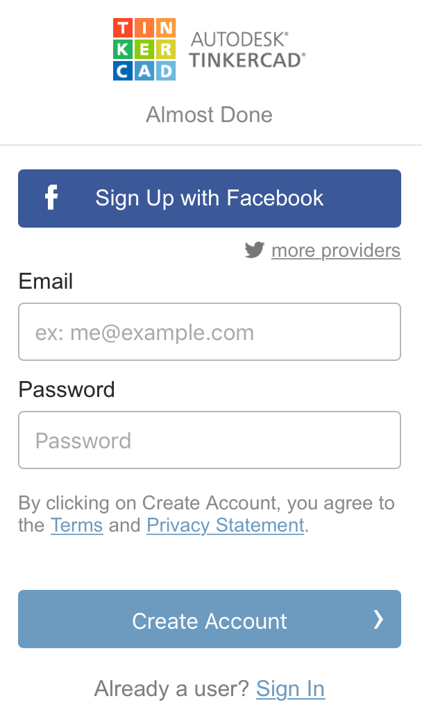 Before you go any further, you should sign up (for free) for a TinkerCAD account. It just takes a minute or two.