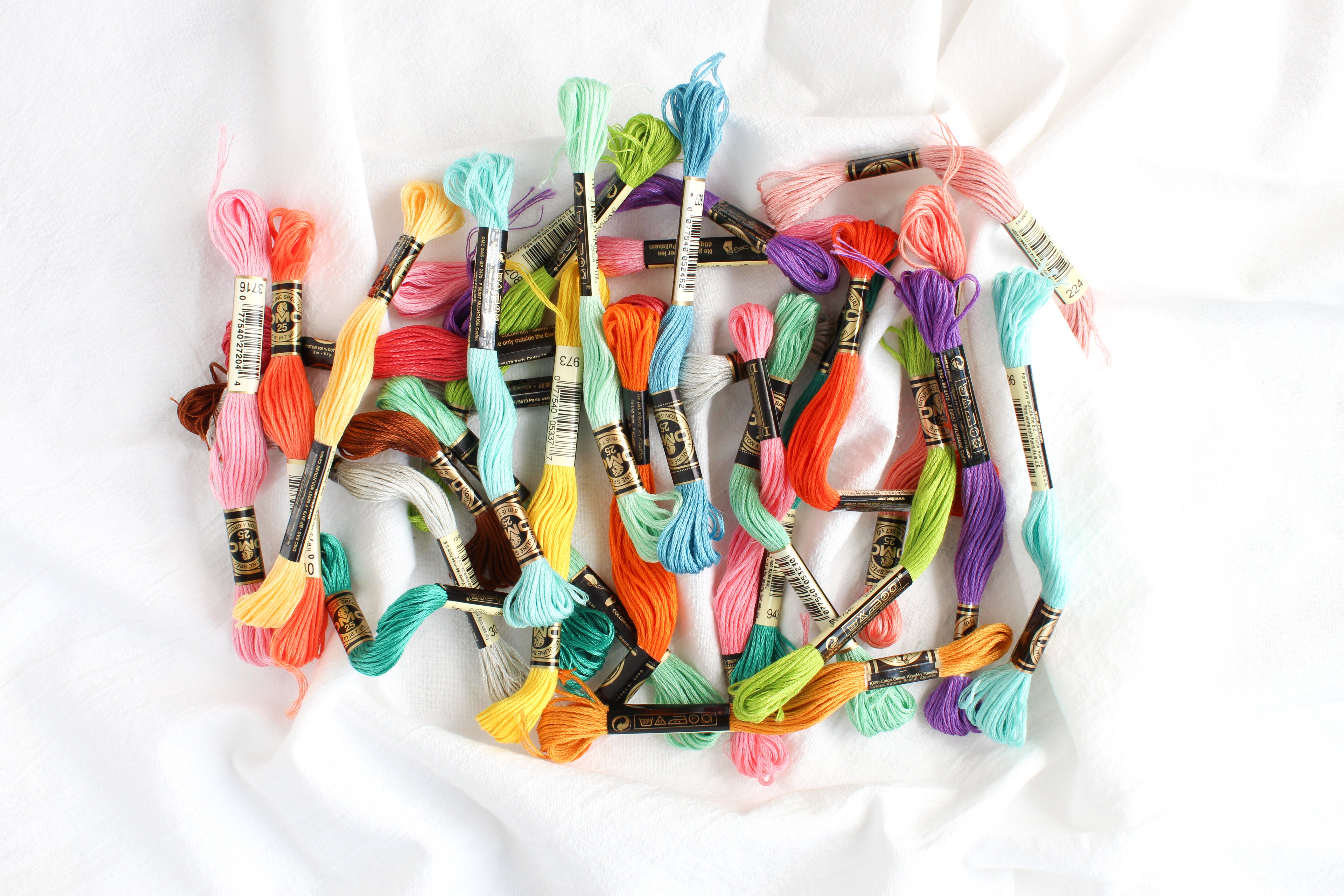 Embroidery floss comes in a few flavors, but we'll be using six-stranded floss for this class. My favorite brand is DMC, which can be found at nearly any craft store.