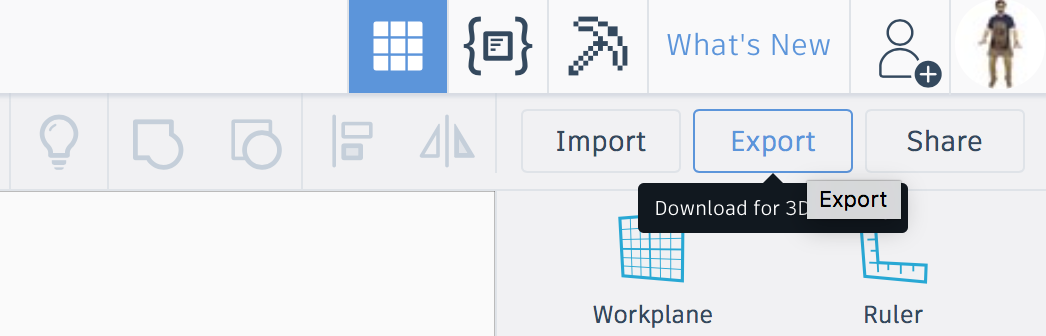First, you'll need to export the model you made in Tinkercad. To do this, just click Export on the top right of the screen.