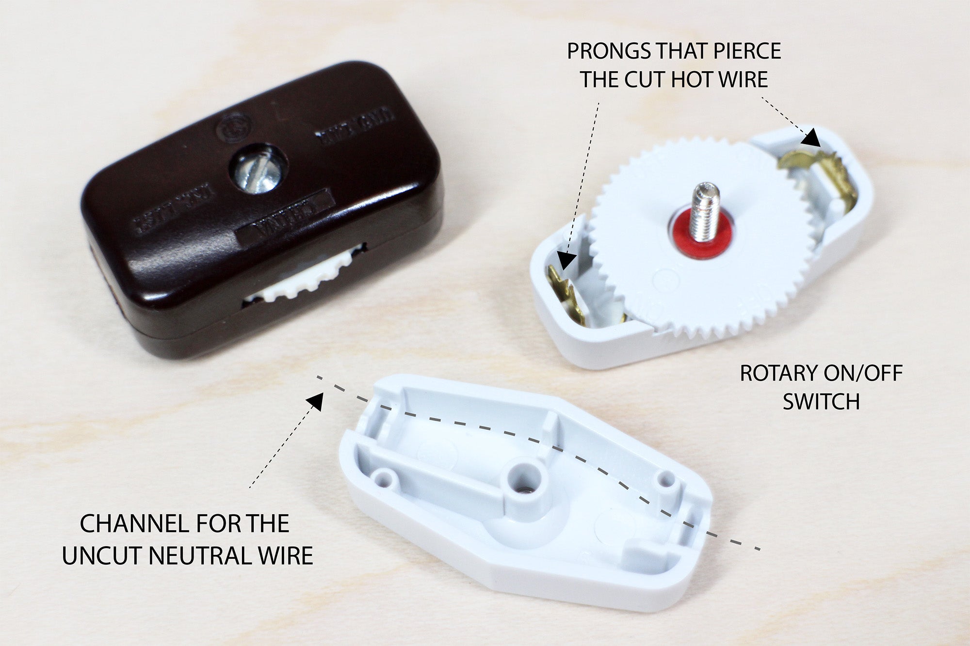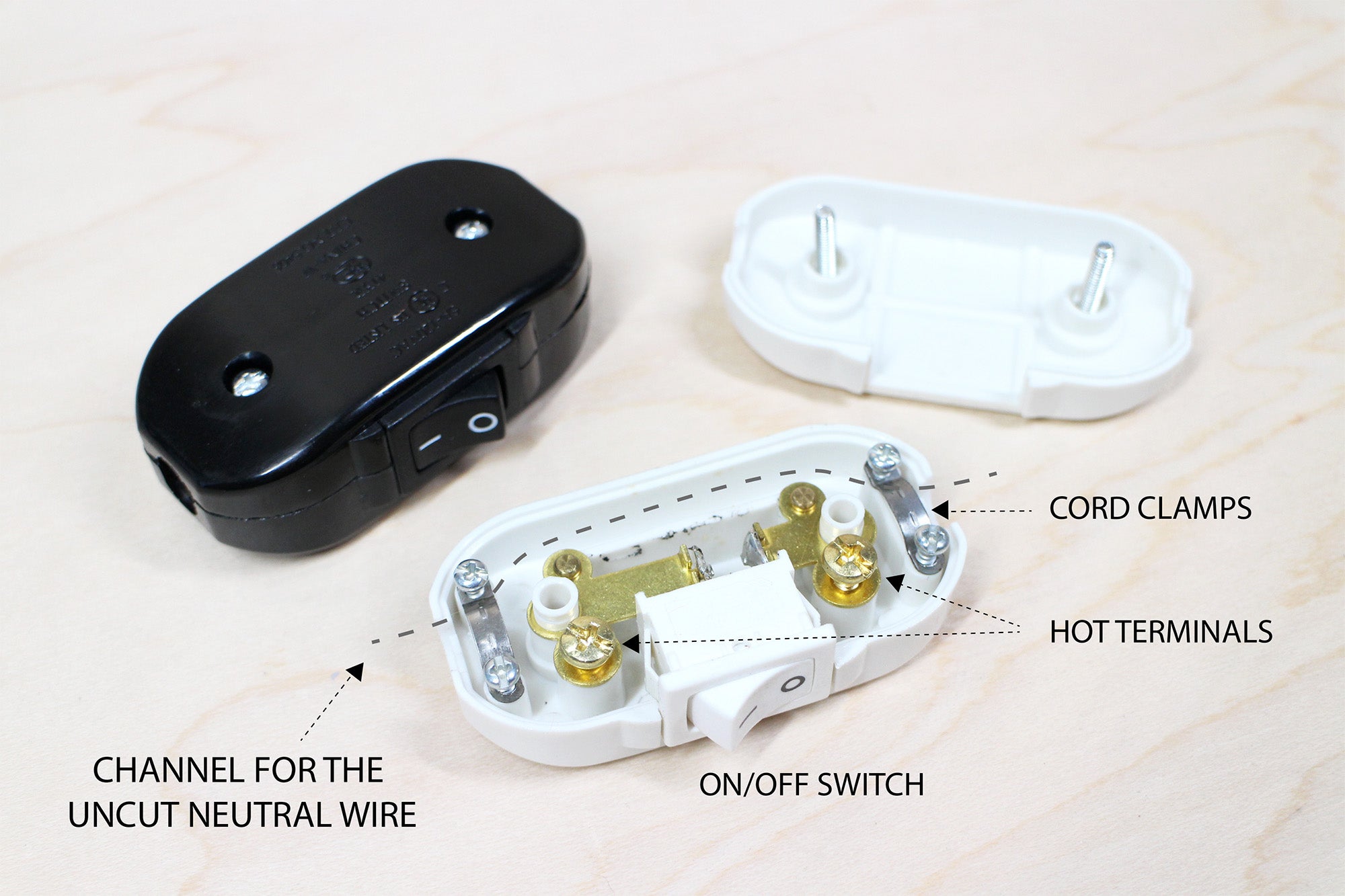 2. Added to the cord. Using line switches allows you total control as to where the lamp will be turned on and off from. They are most commonly used for hanging pendant and floor lamps -- situations where the sockets are keyless (no switch) or hard to reach -- but as mentioned above, they can also be added to table lamps.