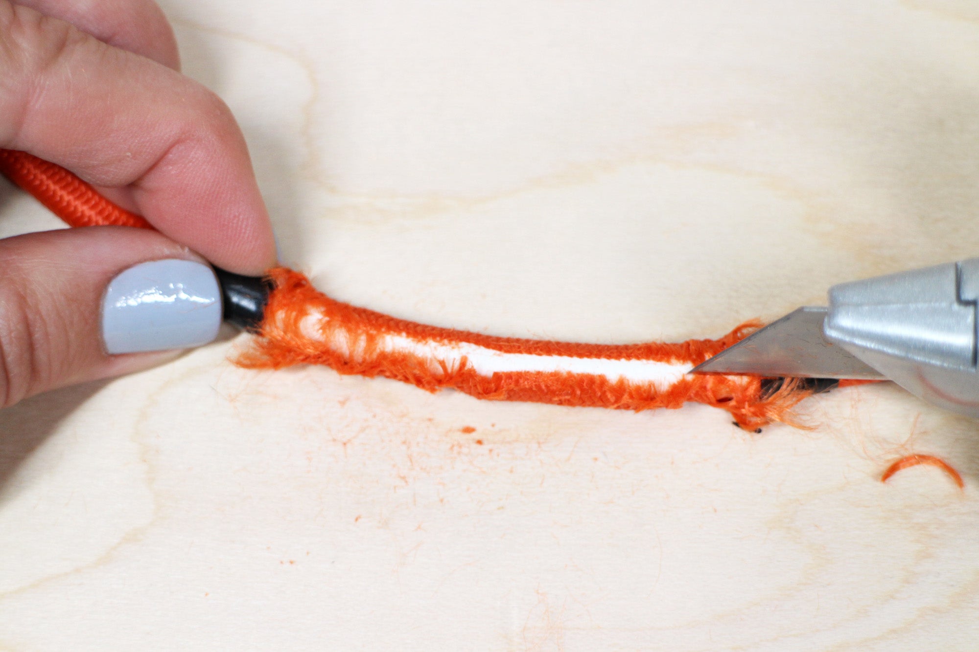 Use the techniques you learned in adding the socket and plug to remove the cloth cover, outside insulation, filler fibers, and ground (if necessary).