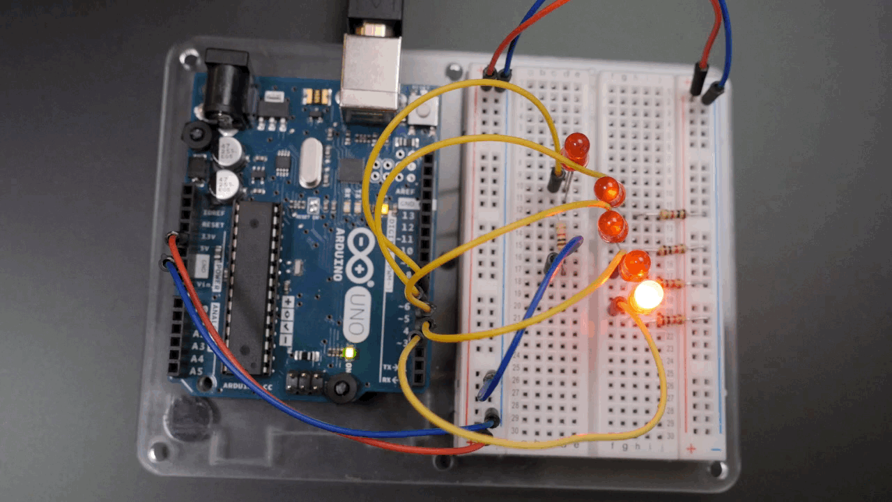 You'll notice that there will usually be more than one way to accomplish the same tasks with Arduino programming. Coding is similar to making things in your workshop: you tend to use whatever tools you have. So lets use a for loop for something fun... animation!
